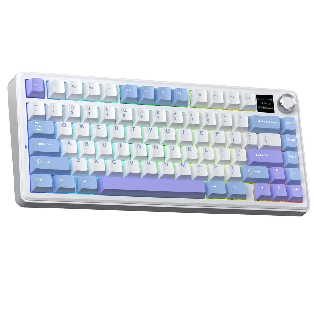 Bàn Phím Cơ Không Dây AULA F75 MAX Xanh Dương Trắng Tím - Reaper Switch (80 phím, 3 mode, Gasket mount, Hotswap, Màn TFT)