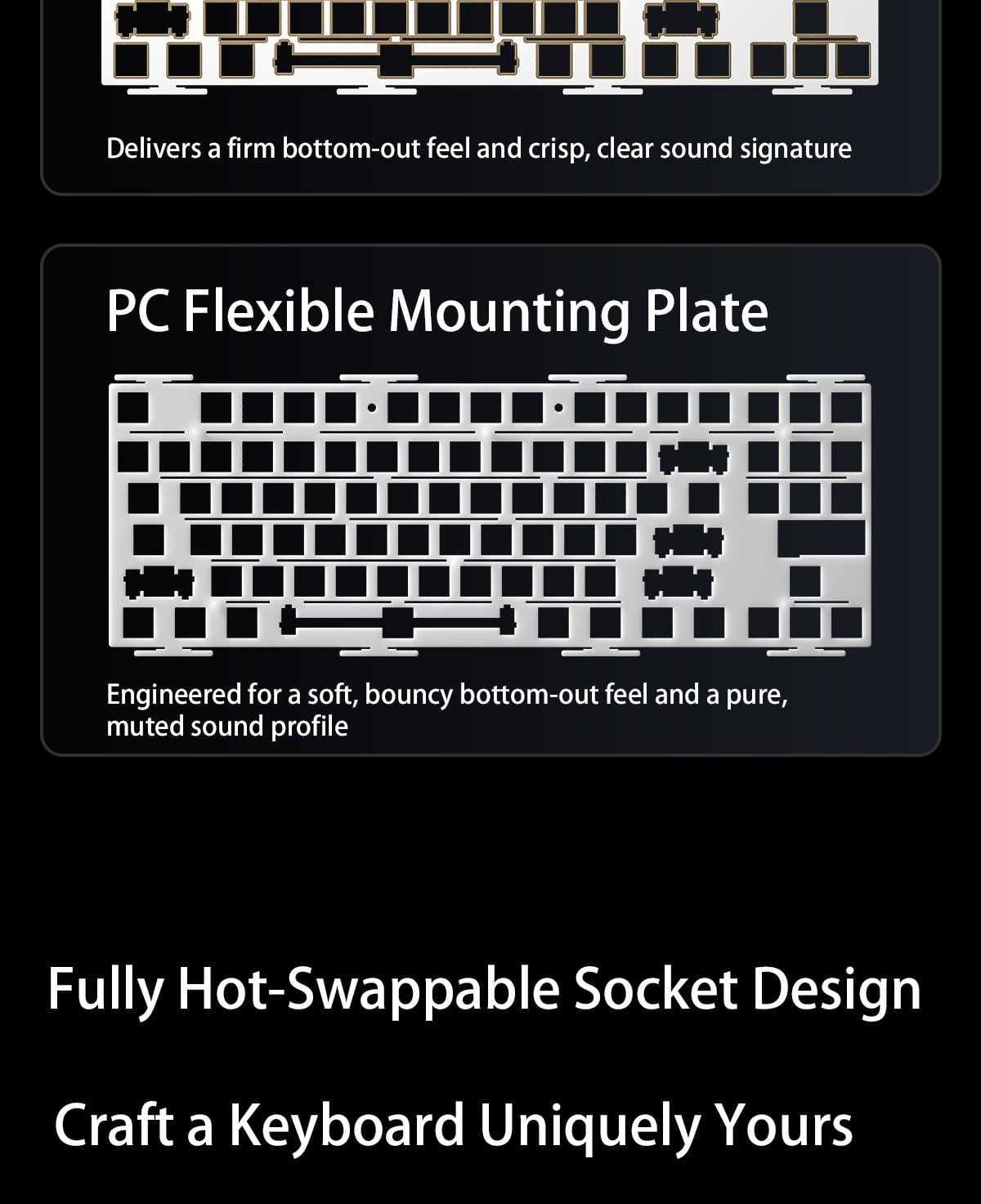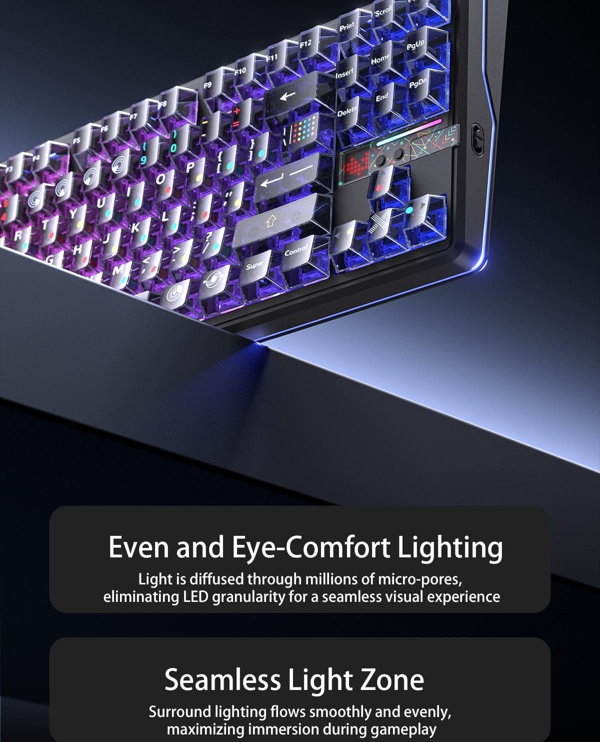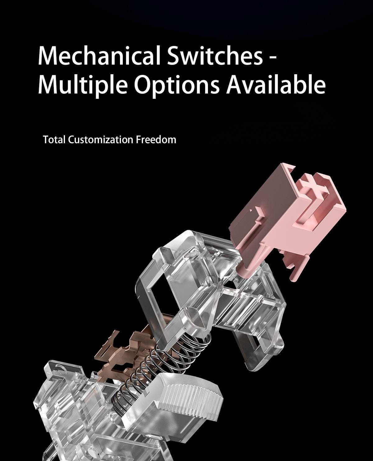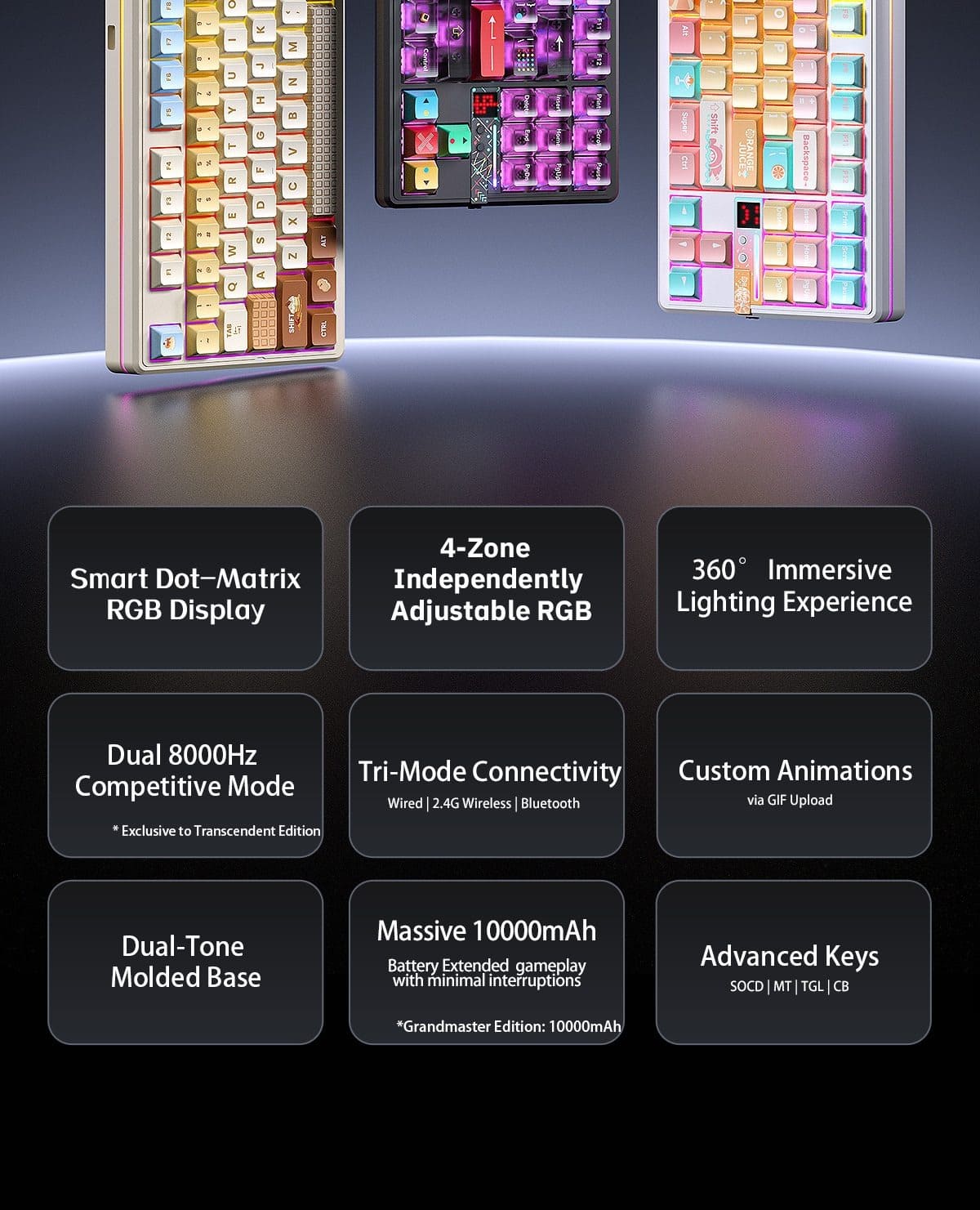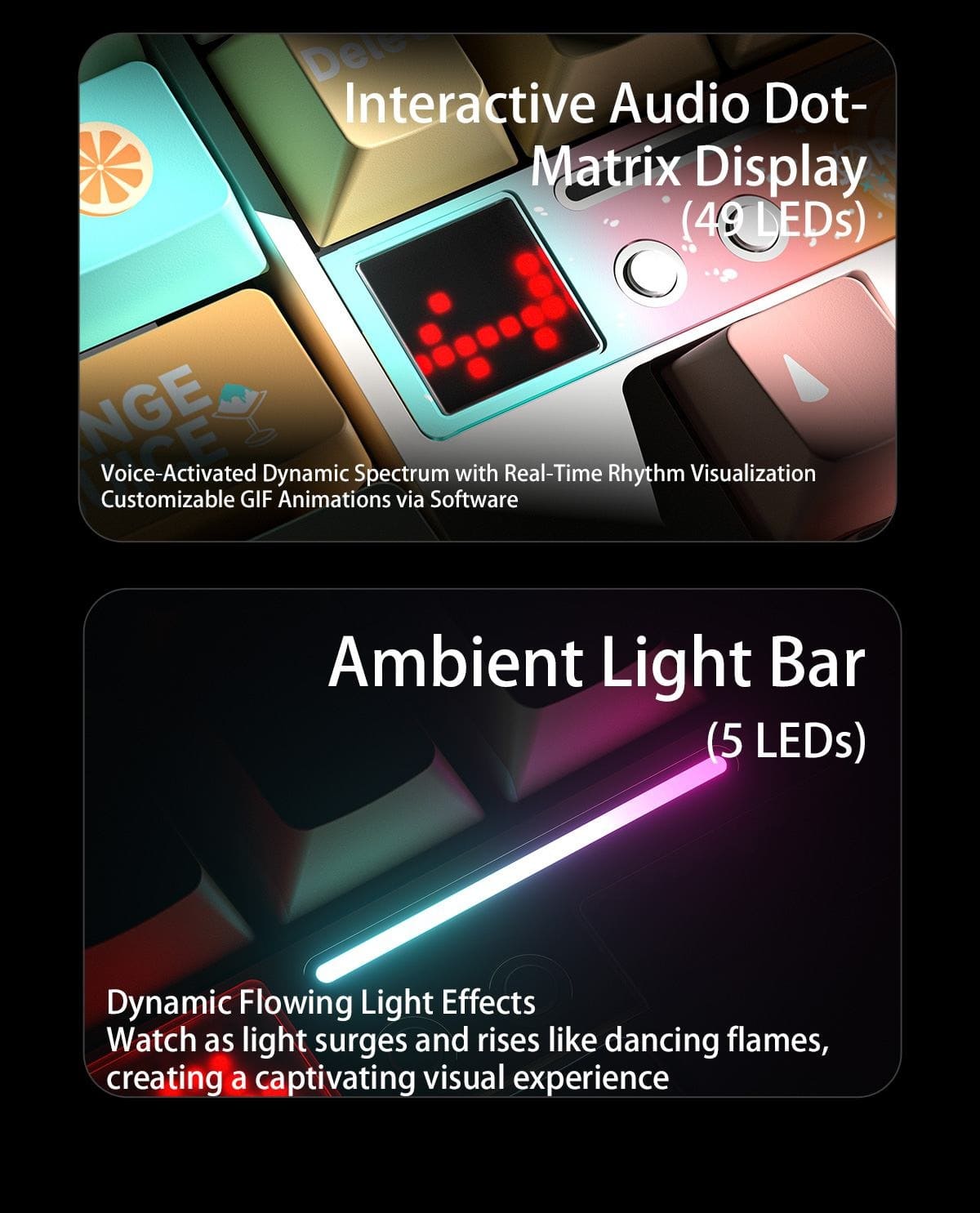 - Tích hợp các tính năng nâng cao SOCD, MT, TGL, CB hỗ trợ cho chơi game - Màn hình LED matrix đa chức năng - Mạch xuôi, hotswap 5-pin thay nóng switch dễ dàng - Cấu trúc gasket mount cùng nhiều lớp đệm tiêu âm - Tấm cố định (Plate) bằng PC - Stabilizer plate mount đã được pre-lube |
