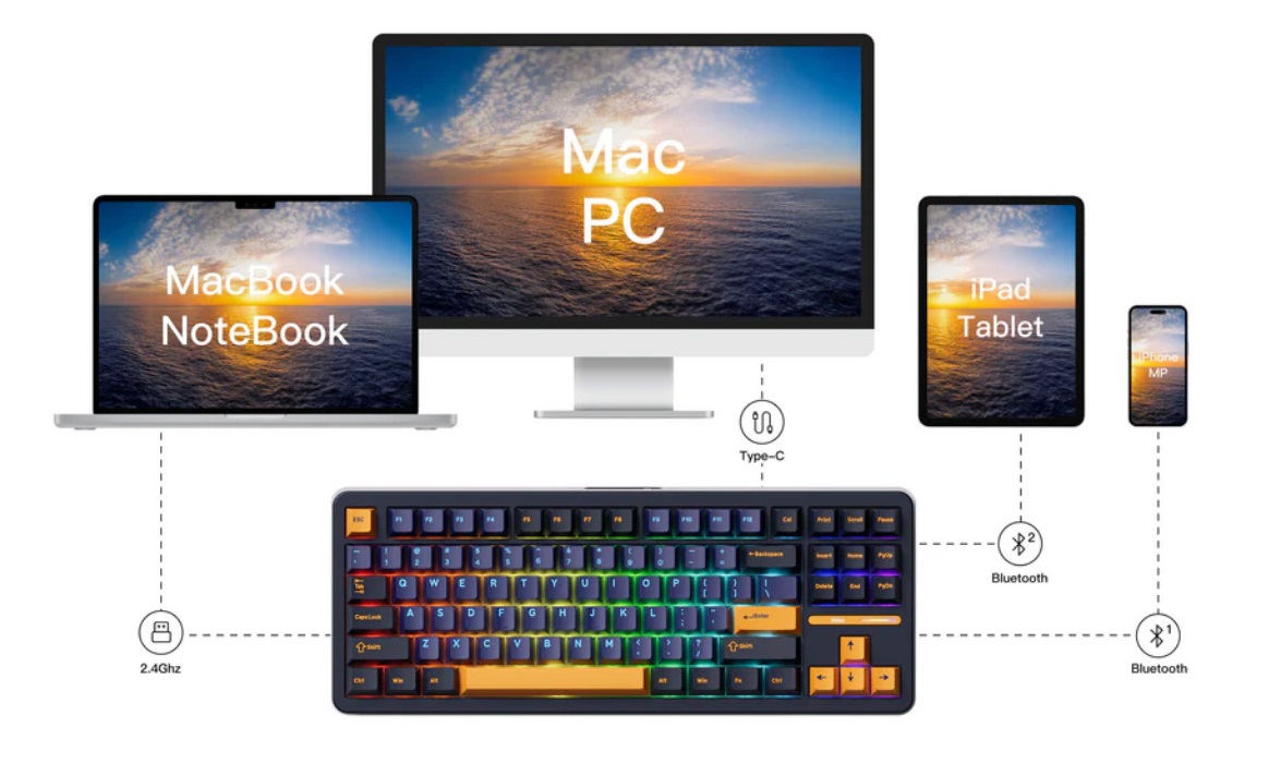 Bàn Phím Cơ Không Dây Akko TAC87 Horizon - Mirror Switch (87 phím, 3 mode, Gasket mount, Hotswap)