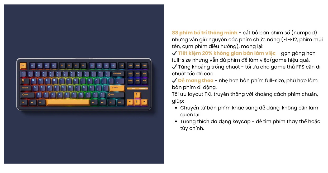 (0 lượt đánh giá)Layout: Tenkeyless 88 phím (80%)