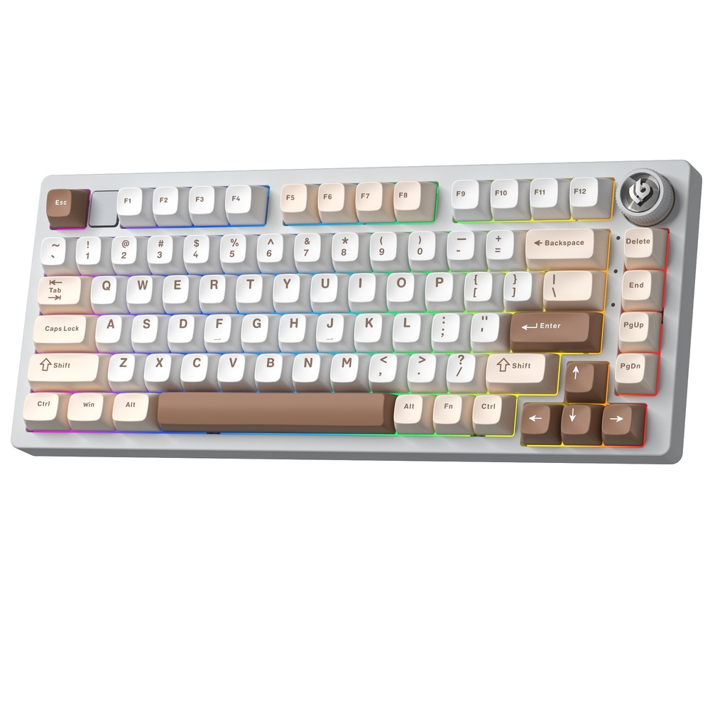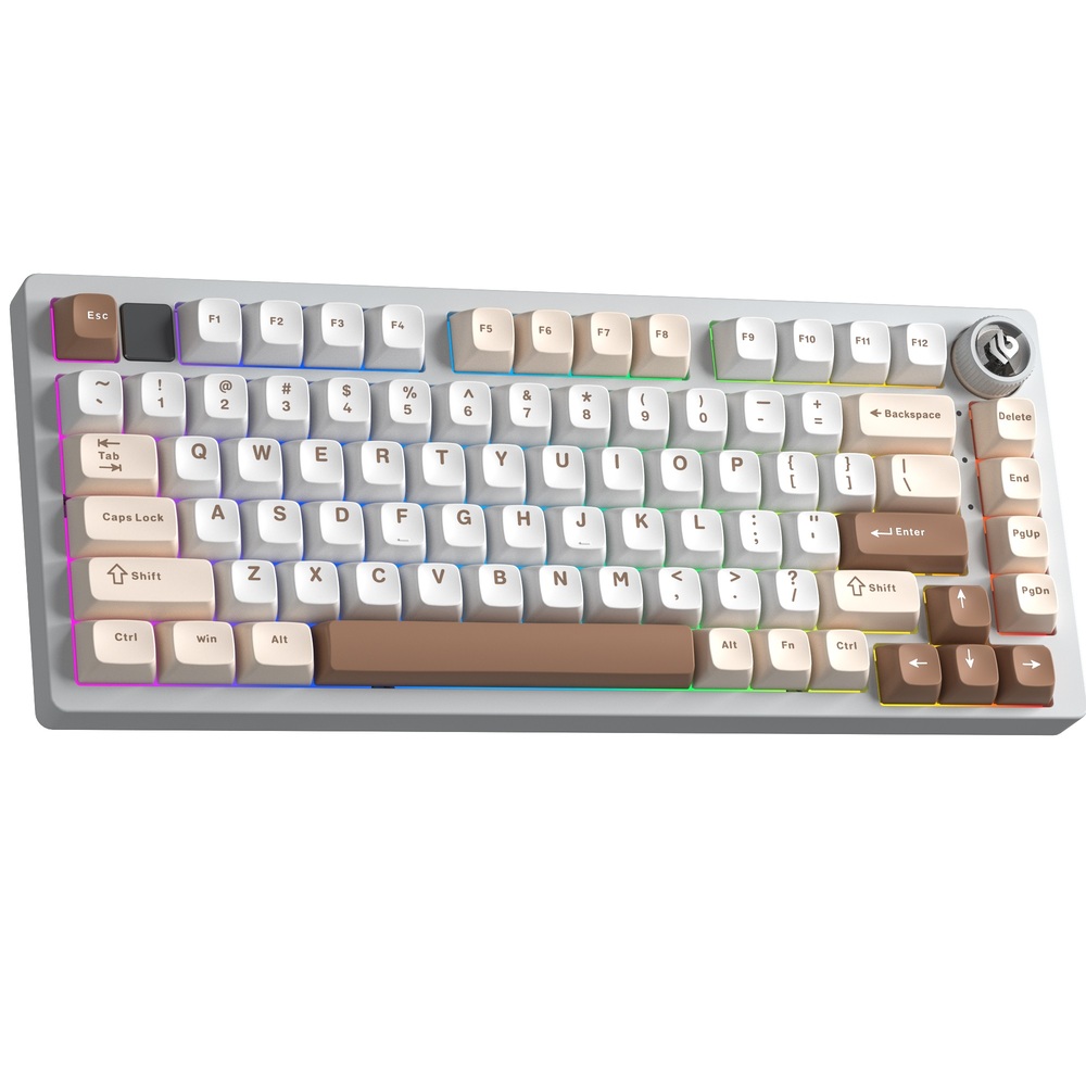 Bàn Phím Cơ Không Dây Vỏ Nhôm Leobog Hi75C PRO Be Trắng Nâu - Turquoise Switch (3 mode, Gasket Mount, Hotswap)
