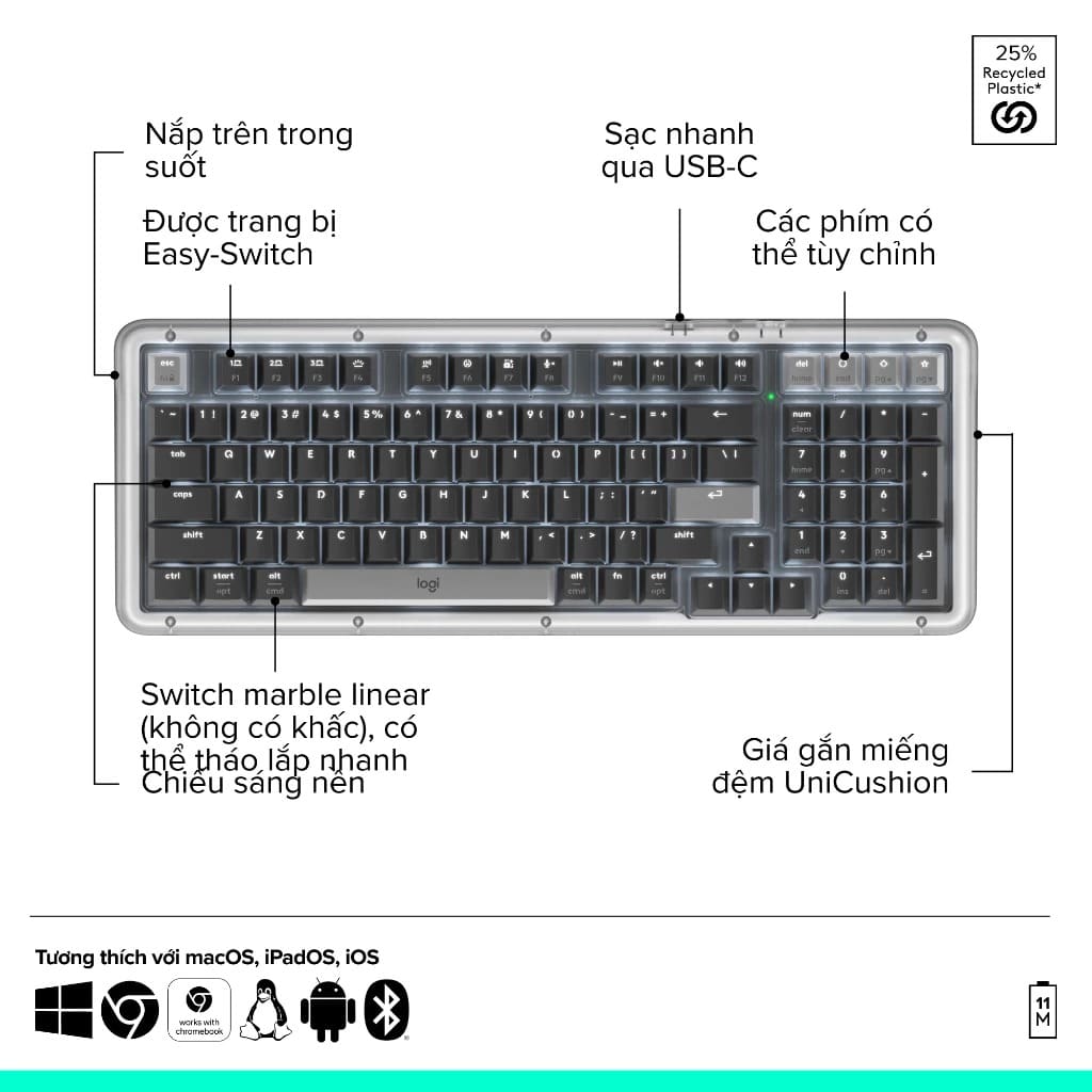 Hỏi đáp về Bàn Phím Cơ Không Dây Logitech Alto Keys K98M Graphite (920-013584)