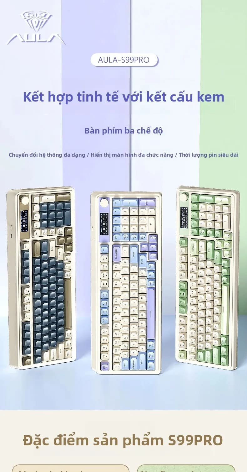 Đánh giá & Nhận xét về Bàn Phím Giả Cơ Không Dây Aula S99 Pro Be + Xanh Dương + Xanh Oliu (3 mode, LED Rainbow, Silent)