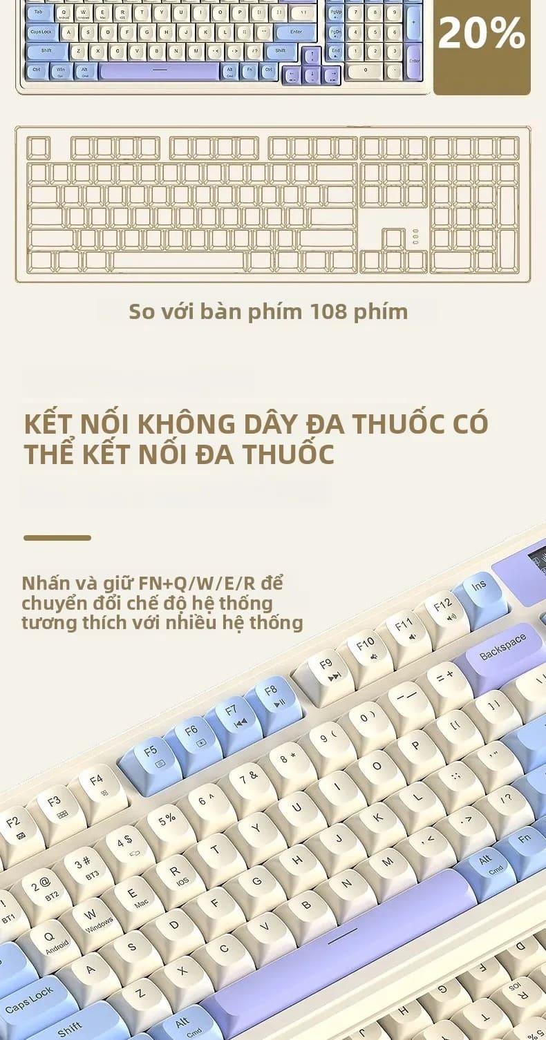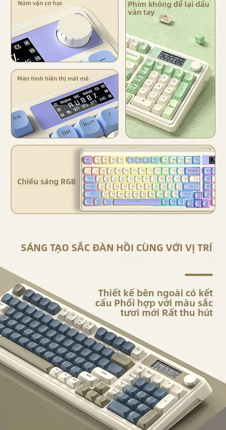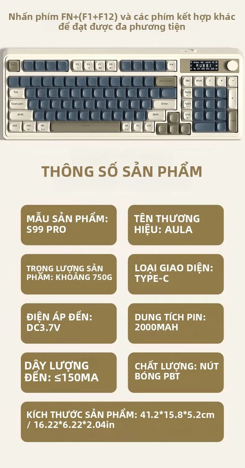 Hỏi đáp về Bàn Phím Giả Cơ Không Dây Aula S99 Pro Be + Xanh Dương + Xanh Oliu (3 mode, LED Rainbow, Silent)