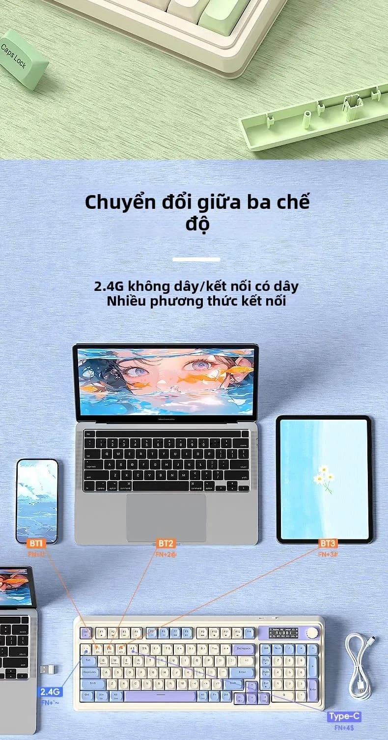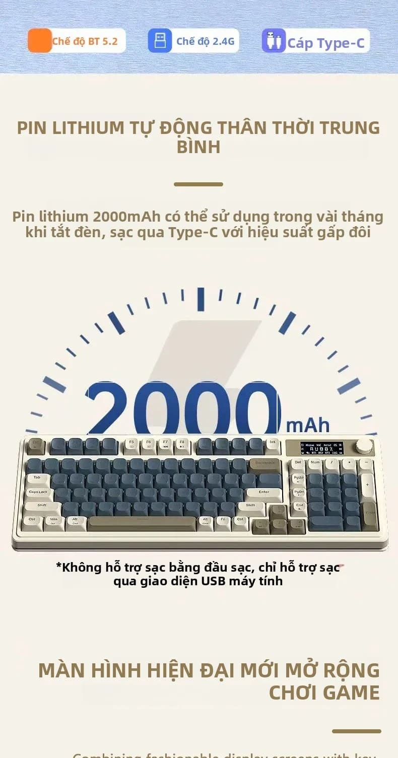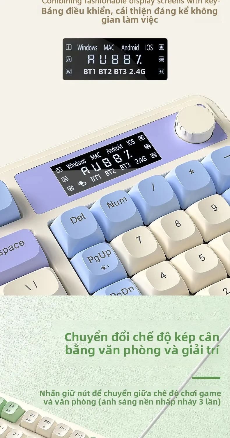 Hỏi đáp về Bàn Phím Giả Cơ Không Dây Aula S99 Pro Be + Xanh Dương + Xanh Oliu (3 mode, LED Rainbow, Silent)
