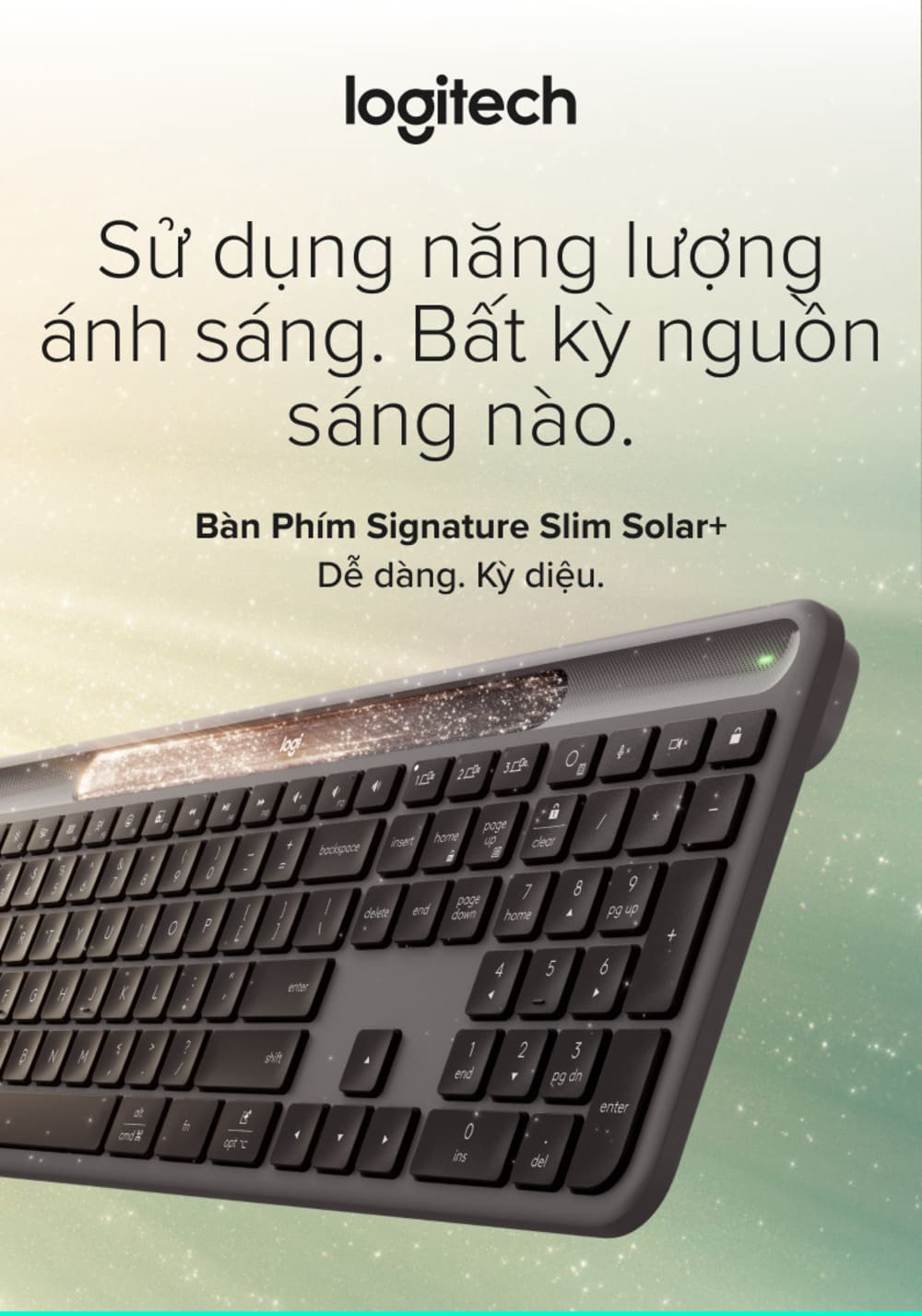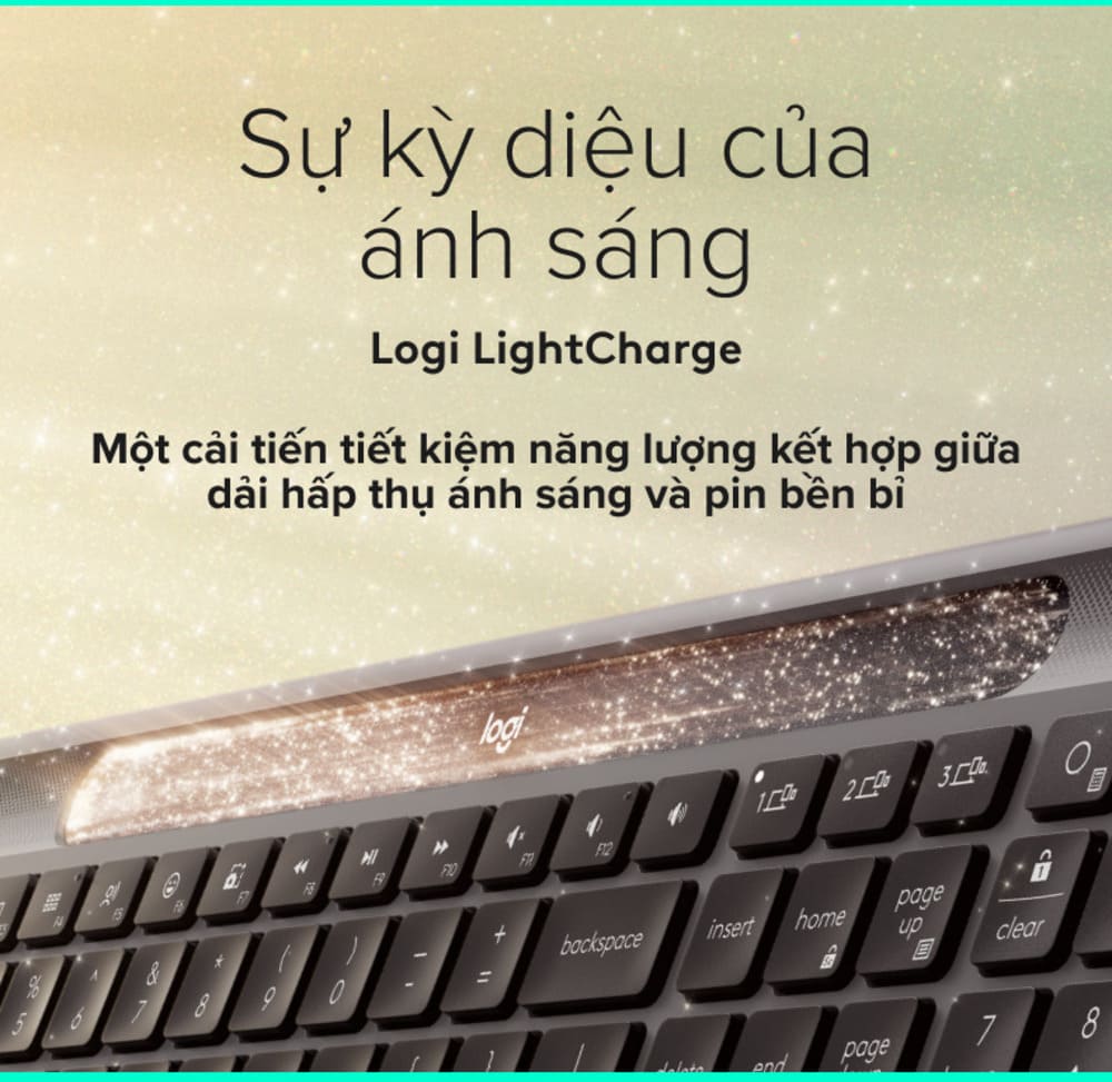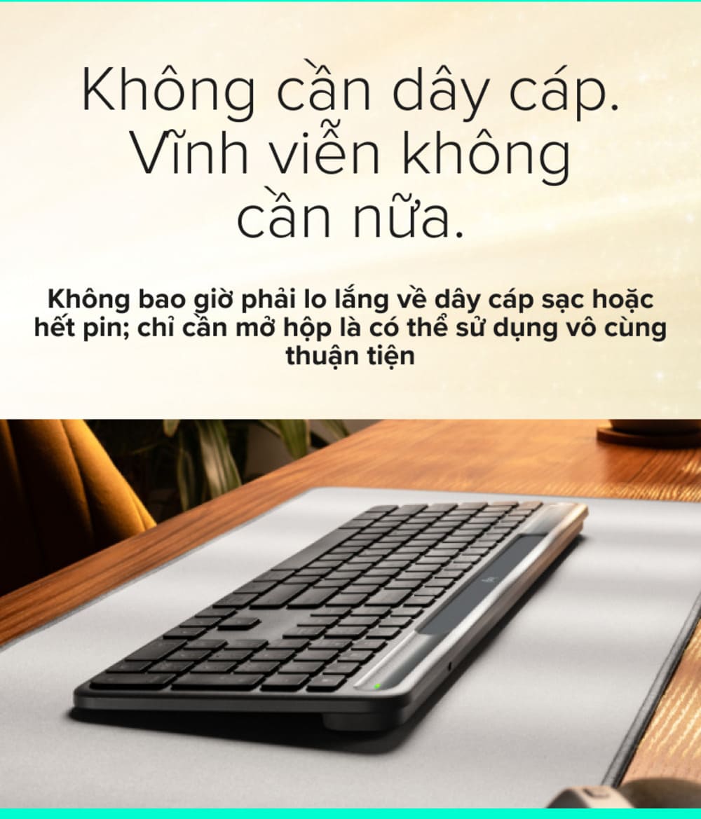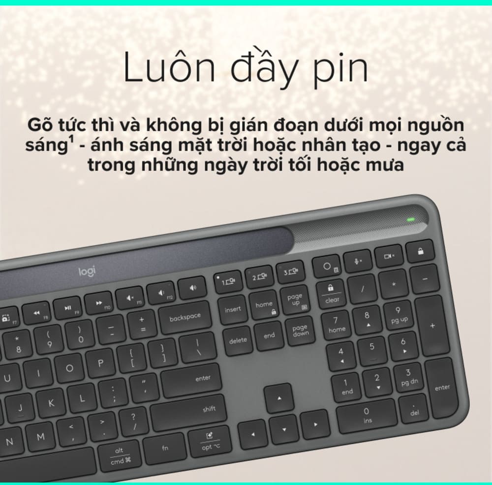 Công nghệ sạc Logi LightCharge với khả năng tự sạc pin qua năng lượng mặt trời và ánh sáng nhân tạo