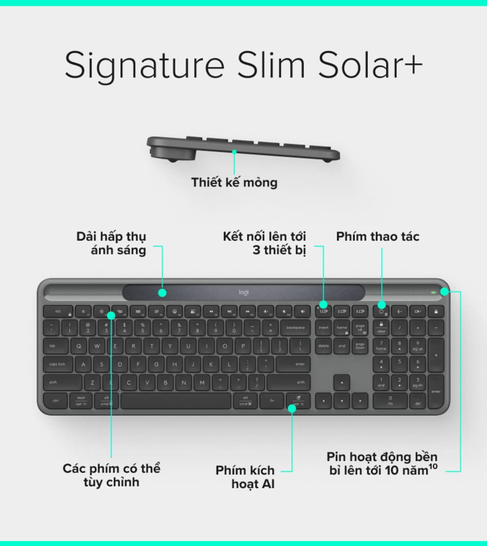 Hỏi đáp về Bàn Phím Không Dây Logitech Signature Slim Solar+ K980 Graphite (920-013765)