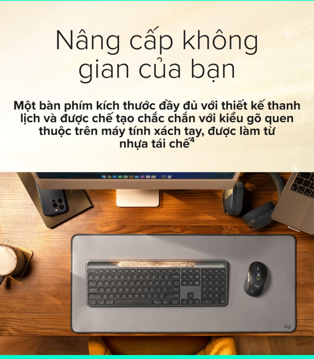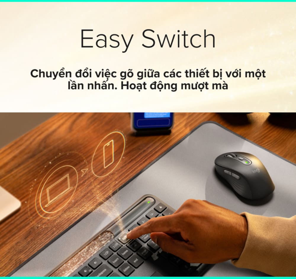 Bluetooth Low Energy Kết nối lên đến 3 thiết bị, chuyển đổi dễ dàng với Easy-switch Tương thích với đầu thu USB Logi Bolt (phải mua riêng) |