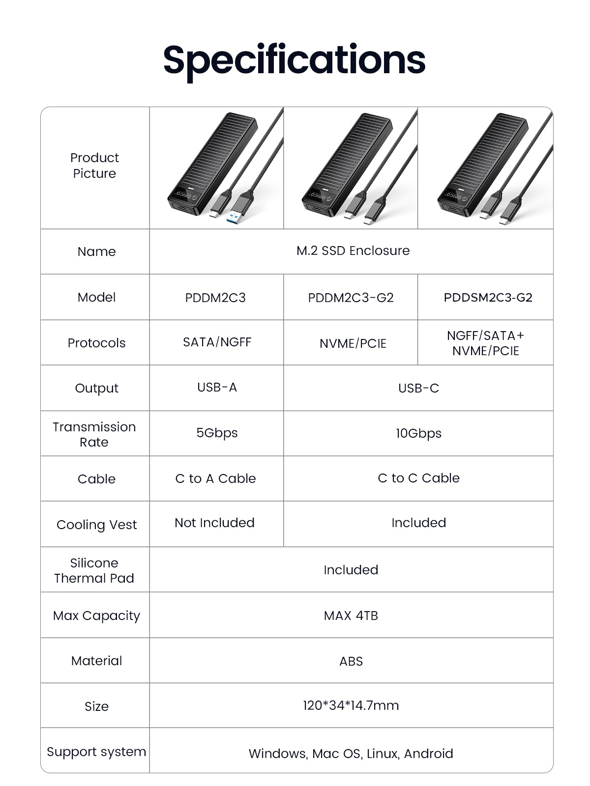 Hỏi đáp về BOX SSD SSD M.2 SATA ORICO PDDM2C3-BK-EP (MAX 4TB, USB-C to A, 5Gbps, ABS)