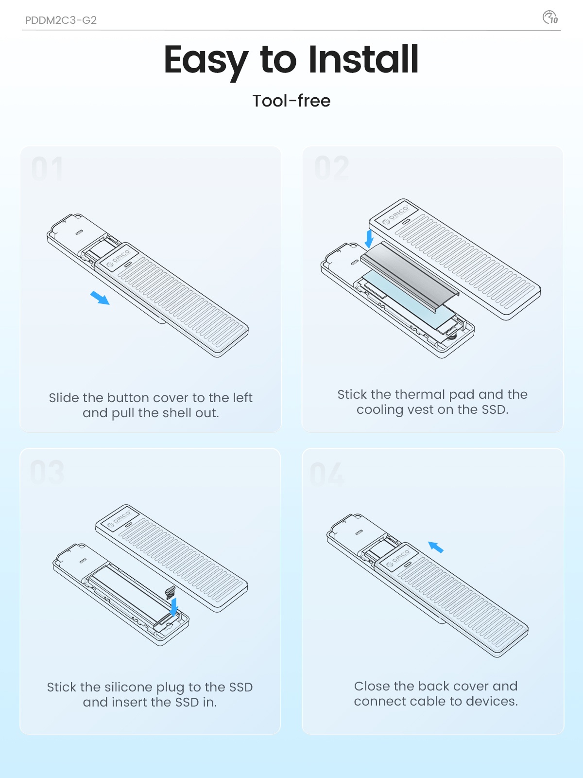Đánh giá & Nhận xét về BOX SSD SSD M.2 SATA ORICO PDDM2C3-BK-EP (MAX 4TB, USB-C to A, 5Gbps, ABS)