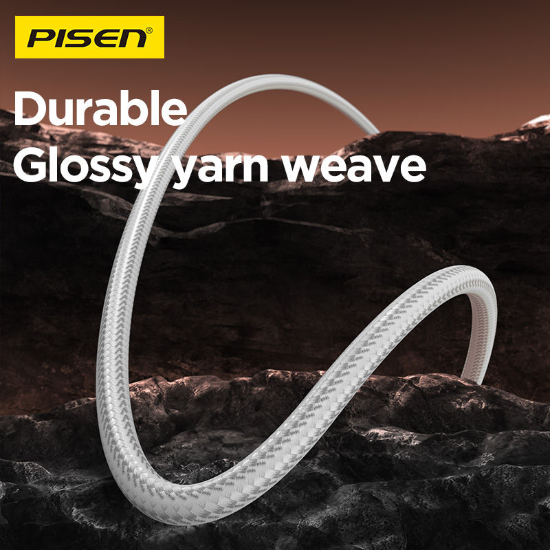 Cáp Sạc 3IN1 Pisen AP-FC17-1800 White (Lightning, USB-C, Micro, Dài 1.8 Mét, Bọc Dù)