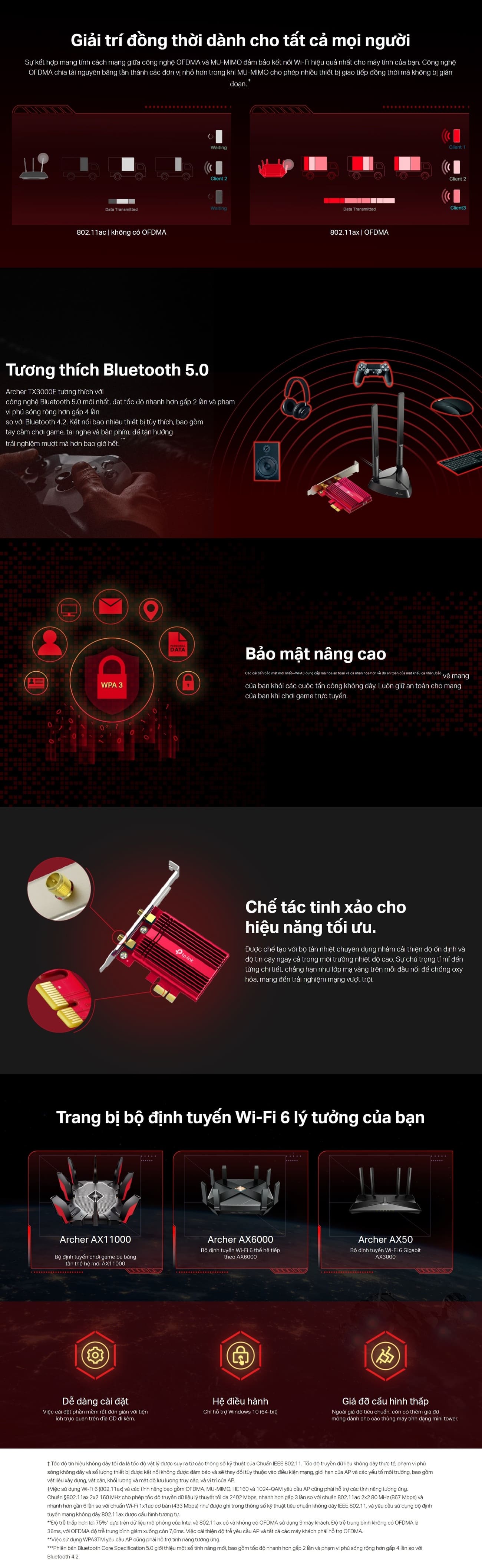 Hỏi đáp về Card Mạng Không Dây PCIe TP-Link Archer TX3000E (AX3000Mbps, 2 băng tần, WiFi 6 + Bluetooth 5.0)