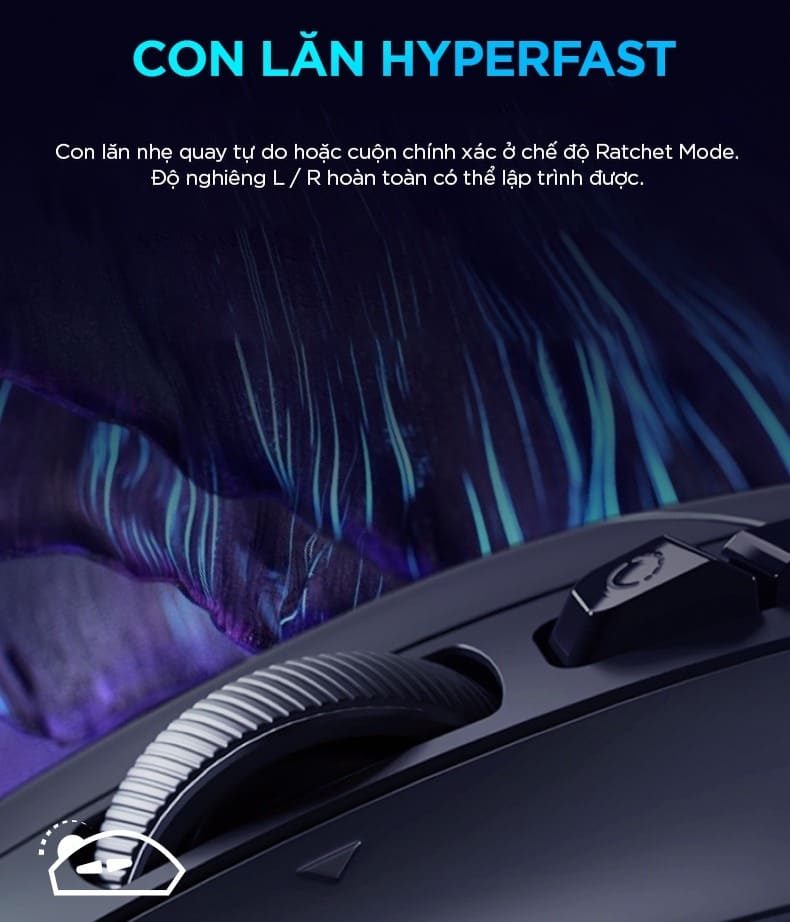 Cuộn chuột Hyperfast Dual-mode với khả năng cuộn siêu tốc, thay đổi chỉ với một nút bấm