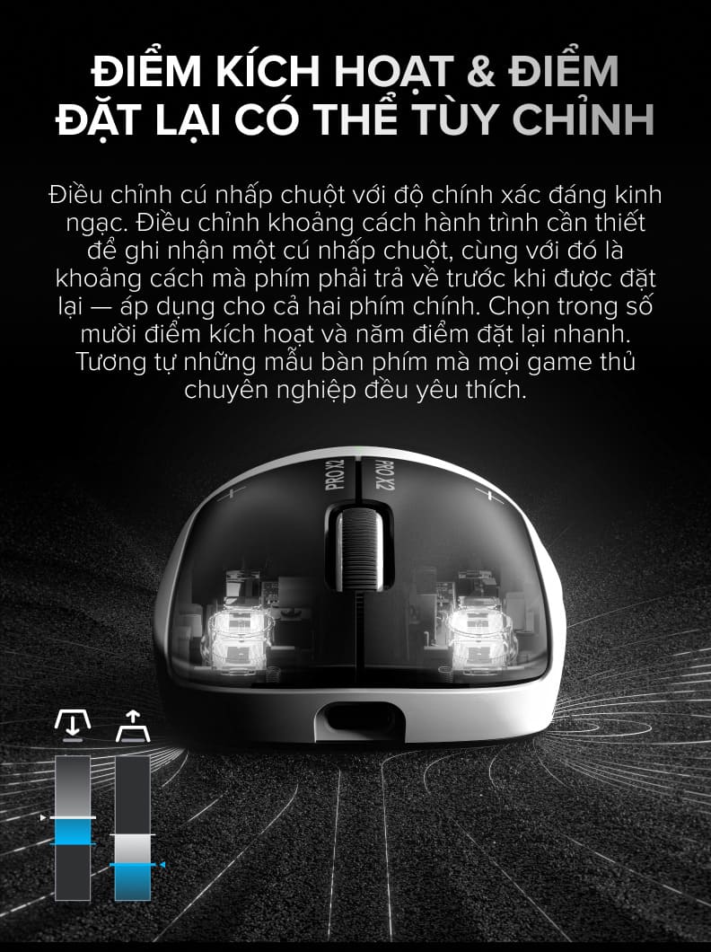 Hỗ trợ tuỳ chỉnh điểm kích hoạt và reset (Rapid Trigger) trên các cú click