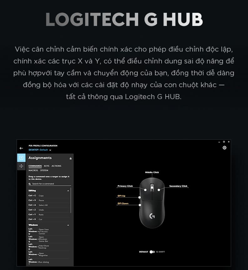 - Bộ nhớ tích hợp - Tương thích với lót chuột PowerPlay - Các tính năng nâng cao yêu cầu Phần mềm Chơi game G HUB của Logitech, có sẵn để tải về tại logitechg.com/ghub |