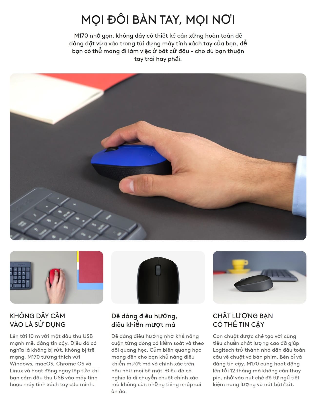 Hỏi đáp về Chuột Không Dây Logitech M171 - Xám Đen (910-004655)
