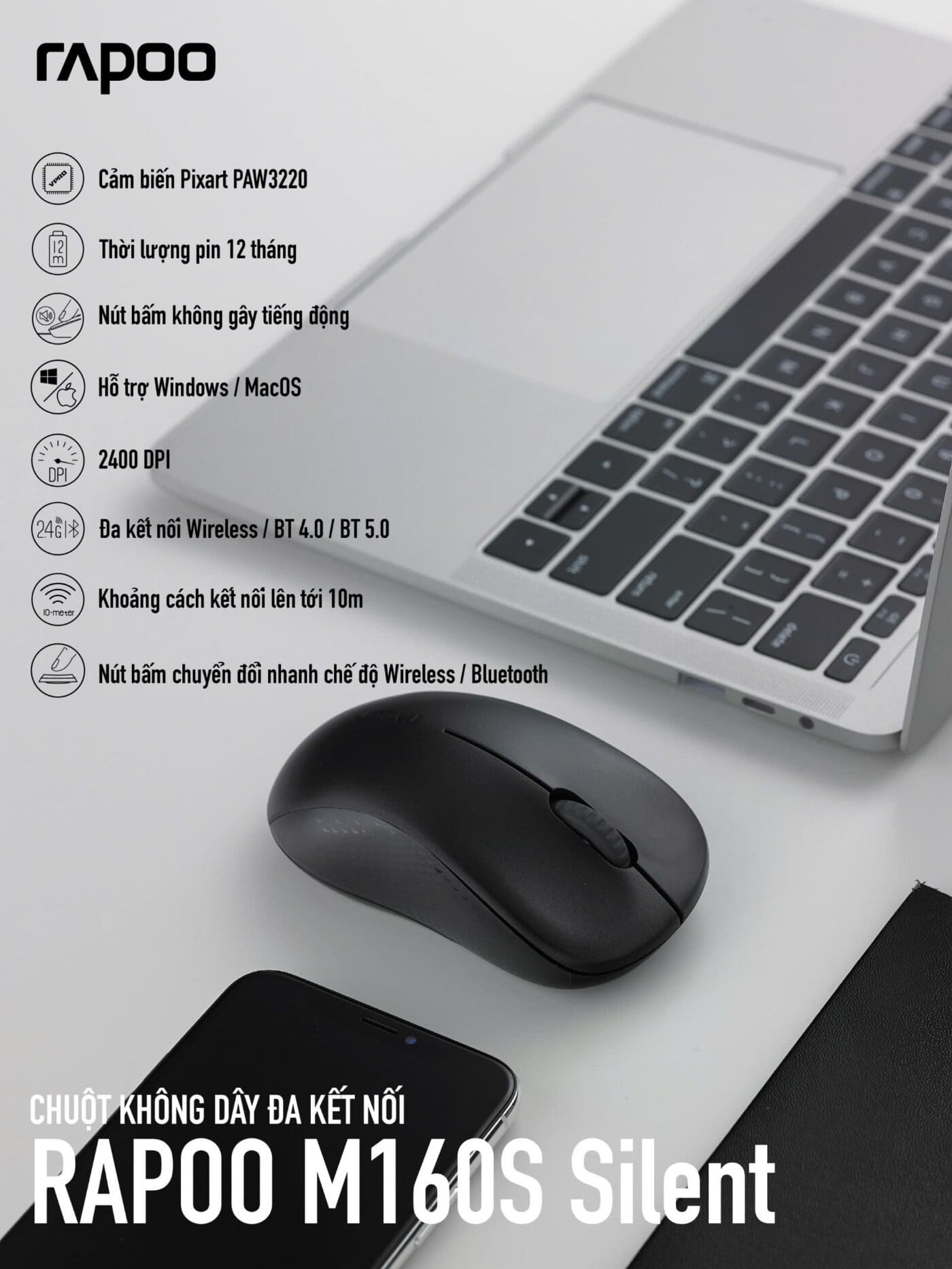 Đánh giá & Nhận xét về Chuột Không Dây Rapoo M160S Silent Black (2.4GHz, Bluetooth, 2400 DPI, Pin AA)