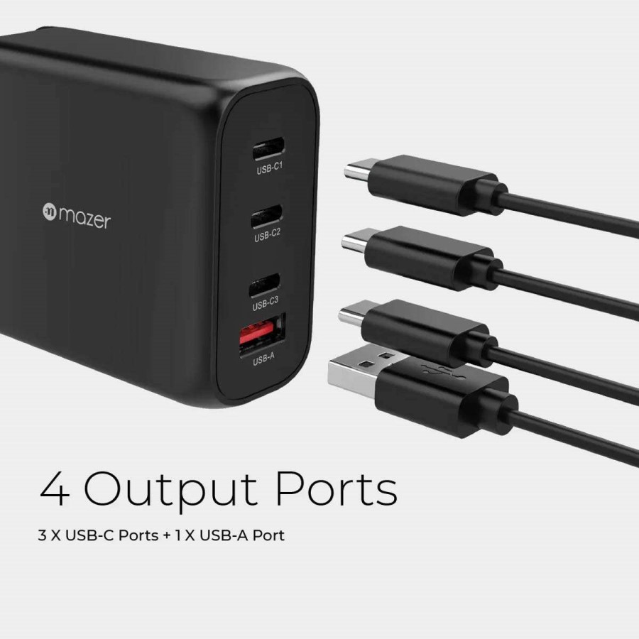 3 x USB-C Power Delivery 3.0 (Tối đa 100W) và 1 x cổng USB-A Quick Charge 4+ (Tối đa 60W)