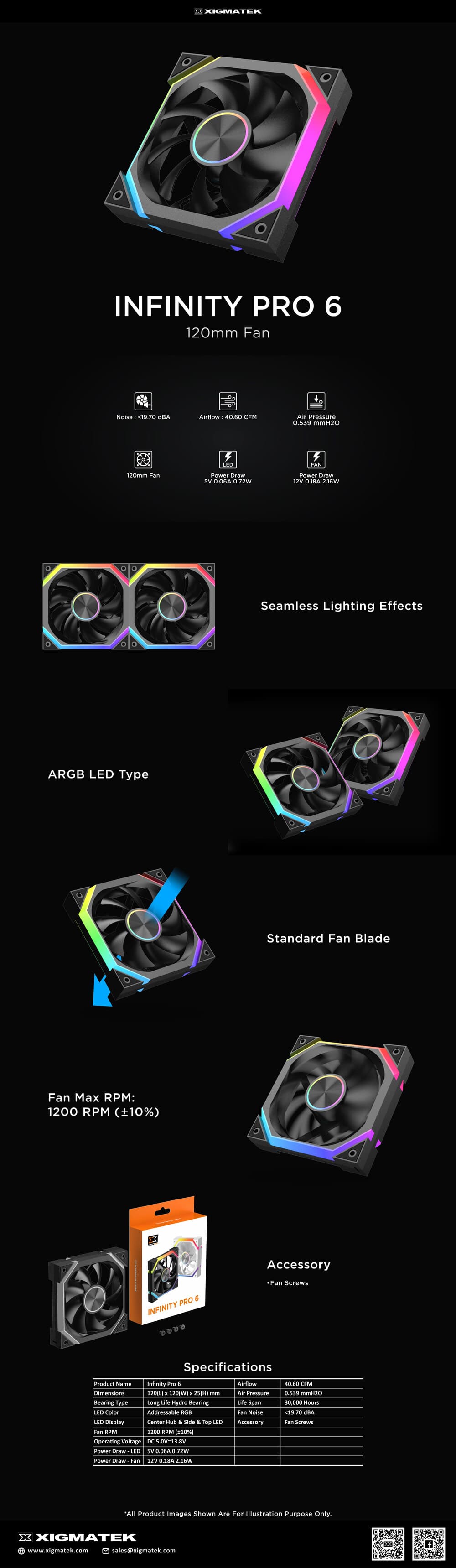 Fan Case Xigmatek Infinity Pro 6 ARGB 120mm Black - EN49415 (Fan xuôi)