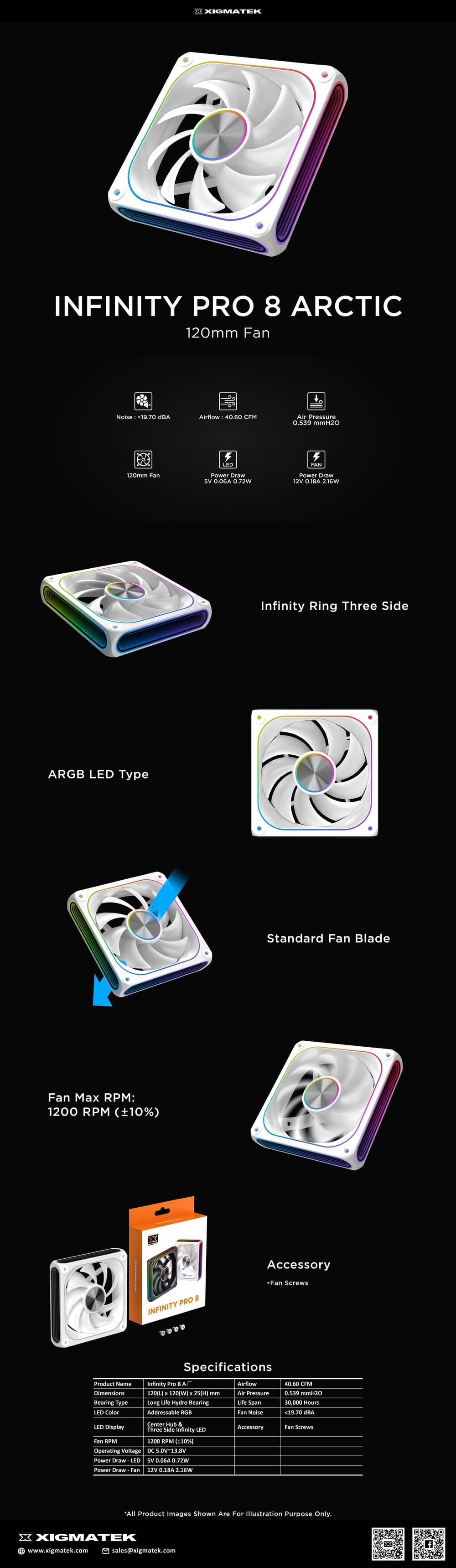 Đánh giá & Nhận xét về Fan Case Xigmatek Infinity Pro 8 ARGB 120mm Arctic - EN49545 (Fan xuôi)