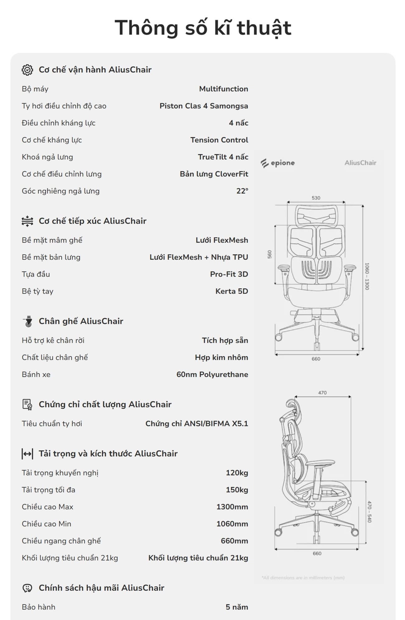Hỏi đáp về Ghế Công Thái Học Epione AliusChair - Cool Gray