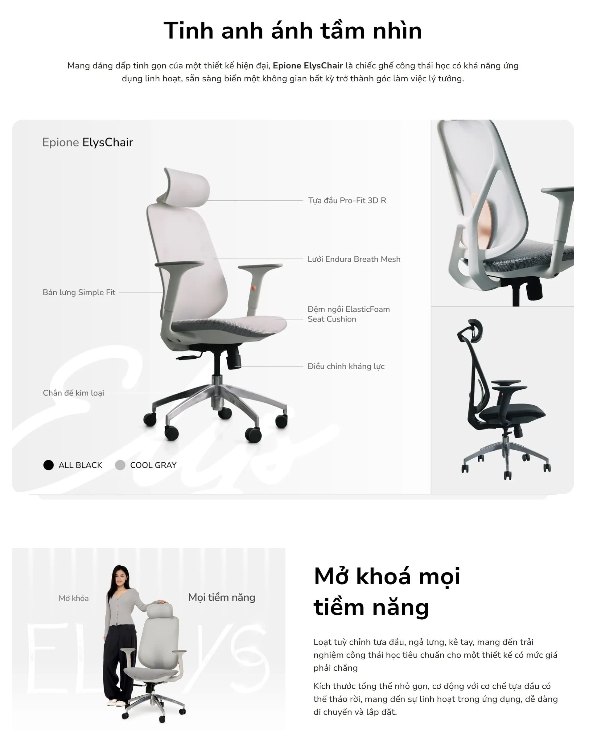Hỏi đáp về Ghế Công Thái Học Epione ElysChair - Cool Gray