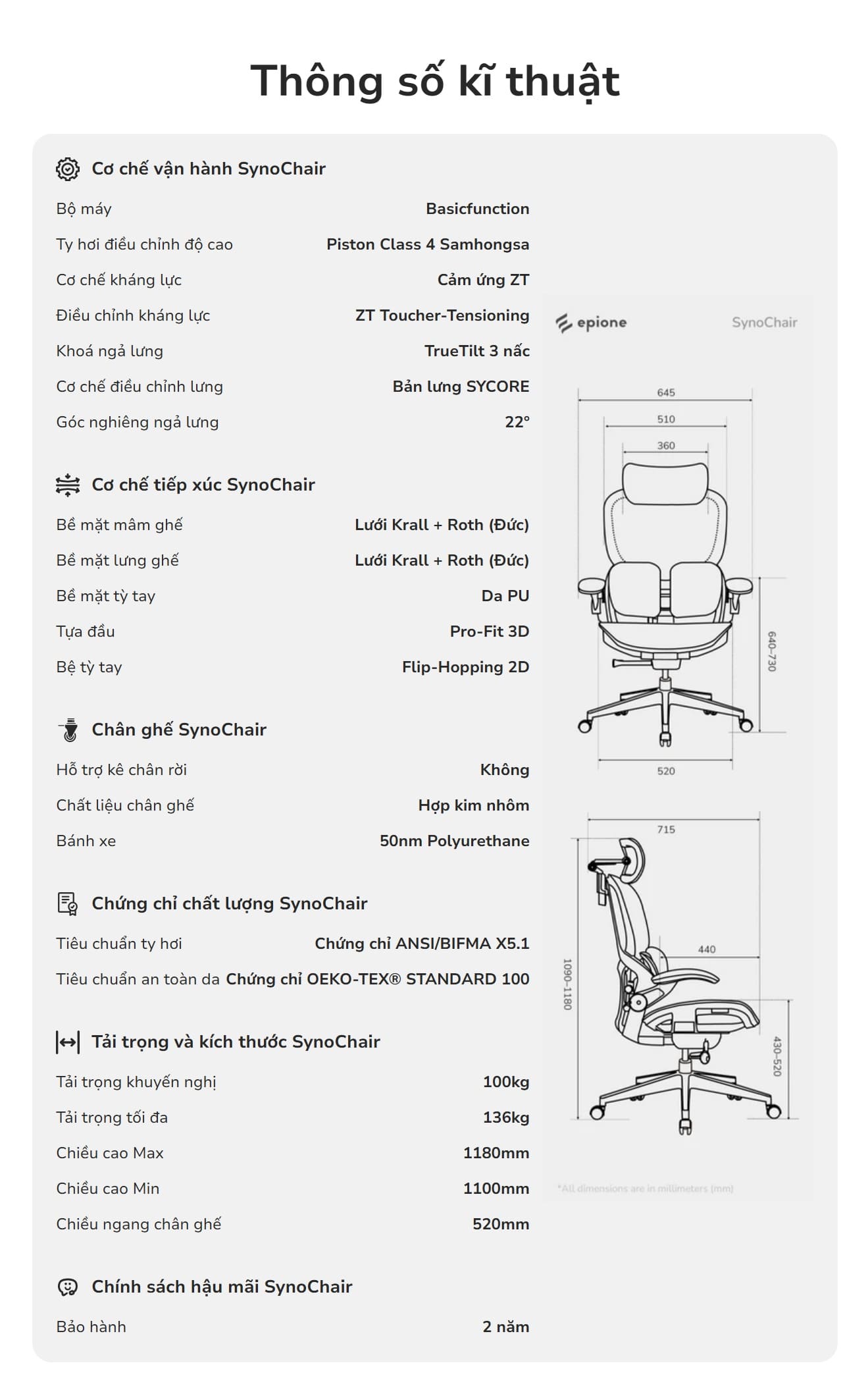Hỏi đáp về Ghế Công Thái Học Epione SynoChair - All Black