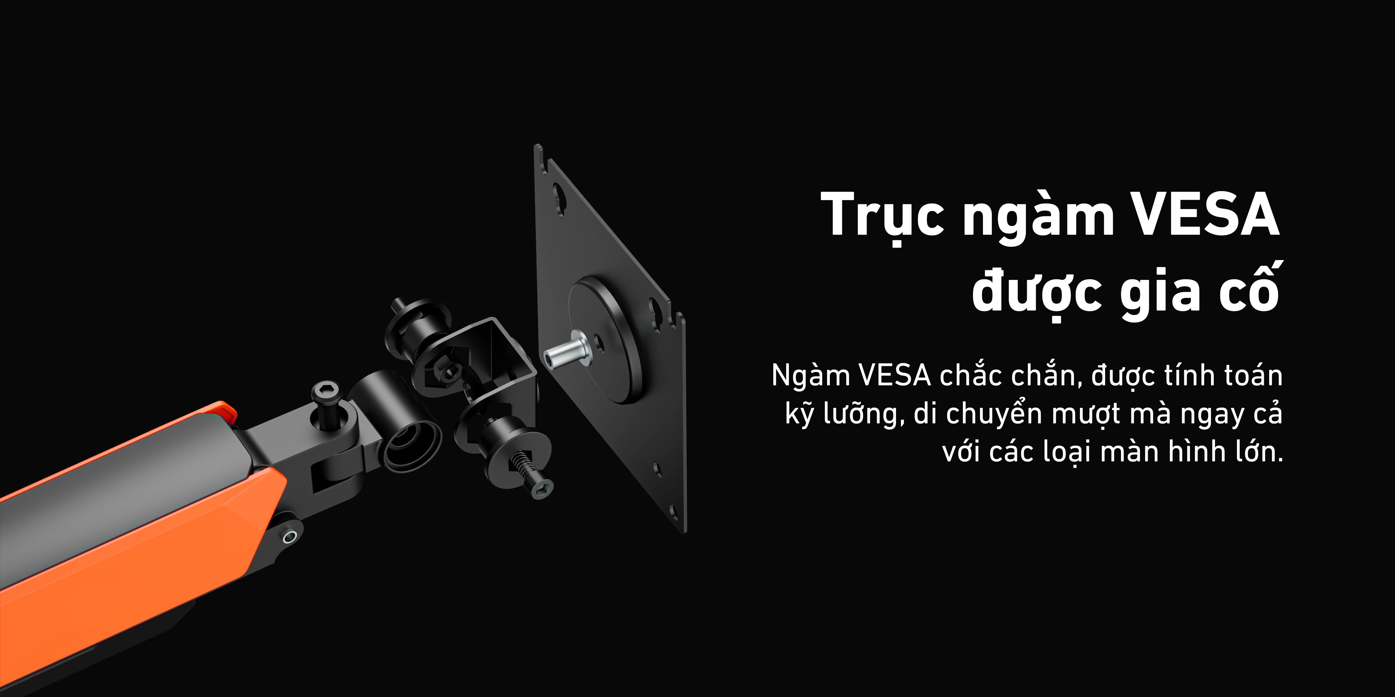 Khoang giấu dây tích hợp trên thân arm, giúp tổng thể arm màn hình và góc làm việc luôn gọn gàng, ngăn nắp.