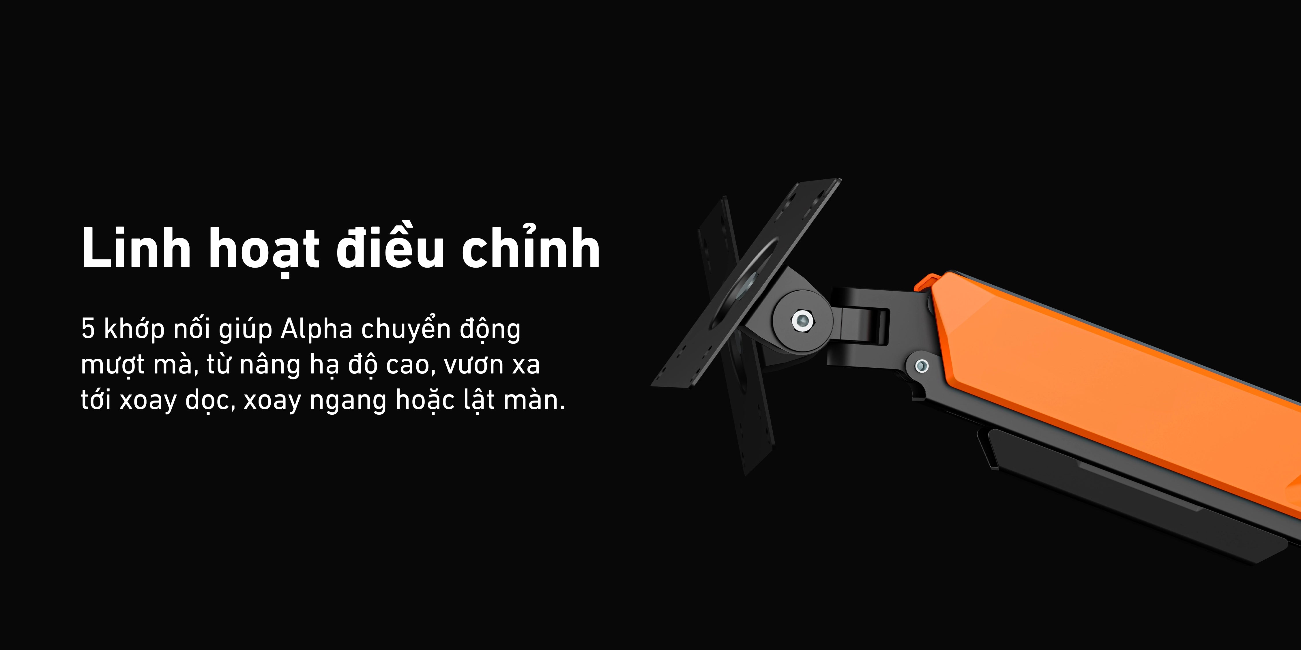 Alpha là kết quả của quá trình nghiên cứu về nhu cầu khi sử dụng arm màn hình của cộng đồng gaming hoặc những người có sở thích setup theo phong cách này.