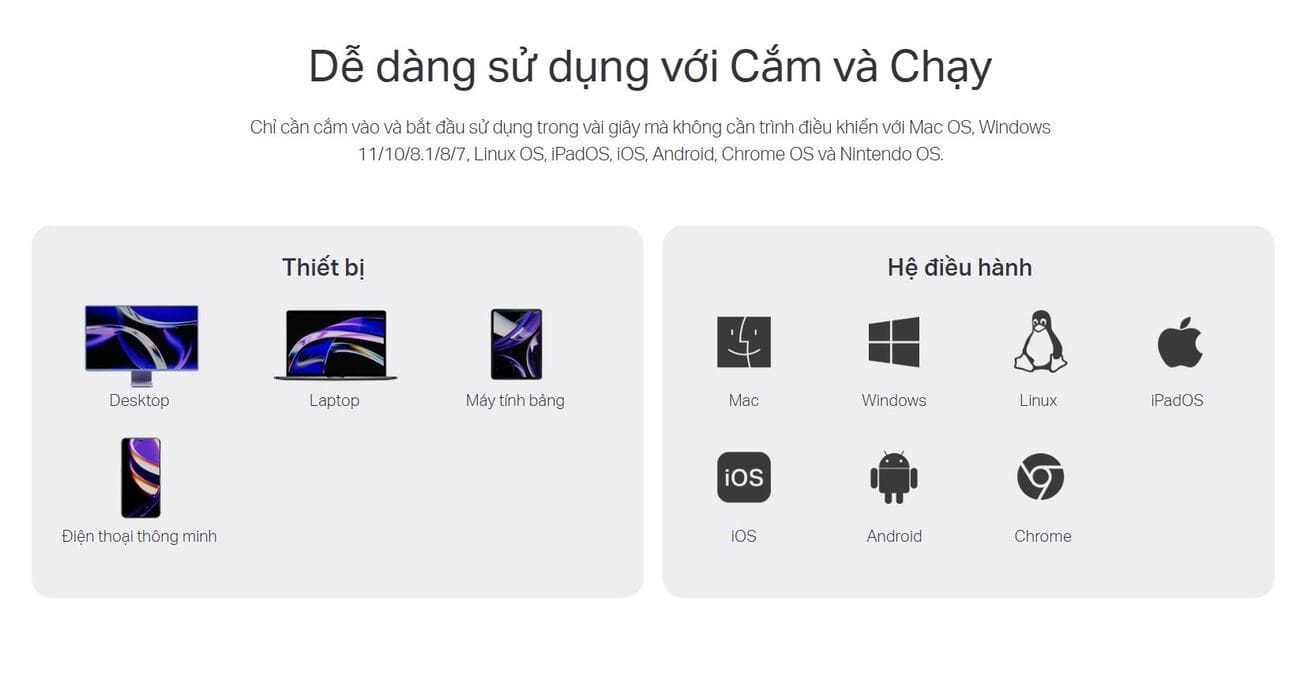 Dễ dàng sử dụng với Plug & Play - Chỉ cần cắm vào là sử dụng, không cần cài đặt driver