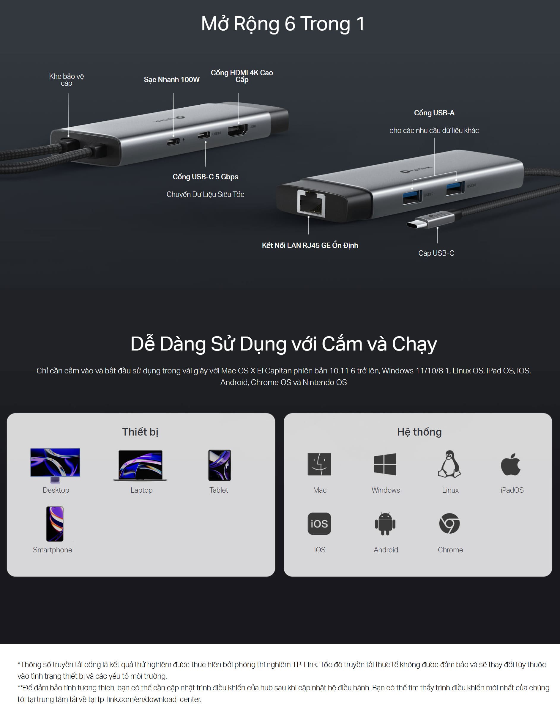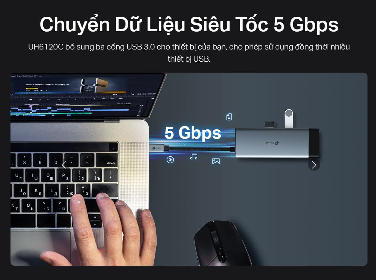 Hỏi đáp về Bộ Chuyển Đổi Hub USB-C 6 in 1 TP-Link UH6120C (HDMI 4K, RJ45 1Gbps, PD 100W, USB-C, 2x USB-A)