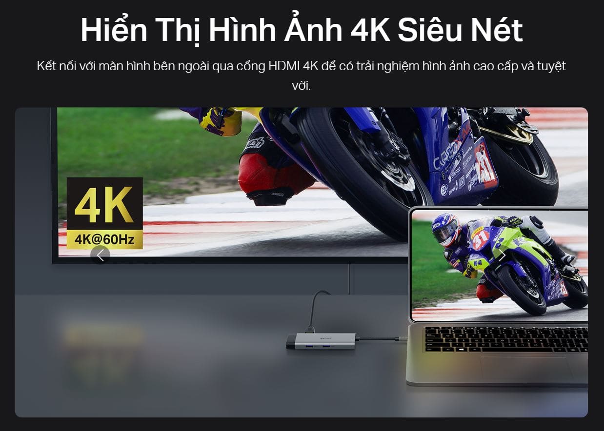 Hỗ trợ xuất hình qua cổng HDMI với độ phân giải lên đến 4K@60Hz để có trải nghiệm hình ảnh siêu sắc nét