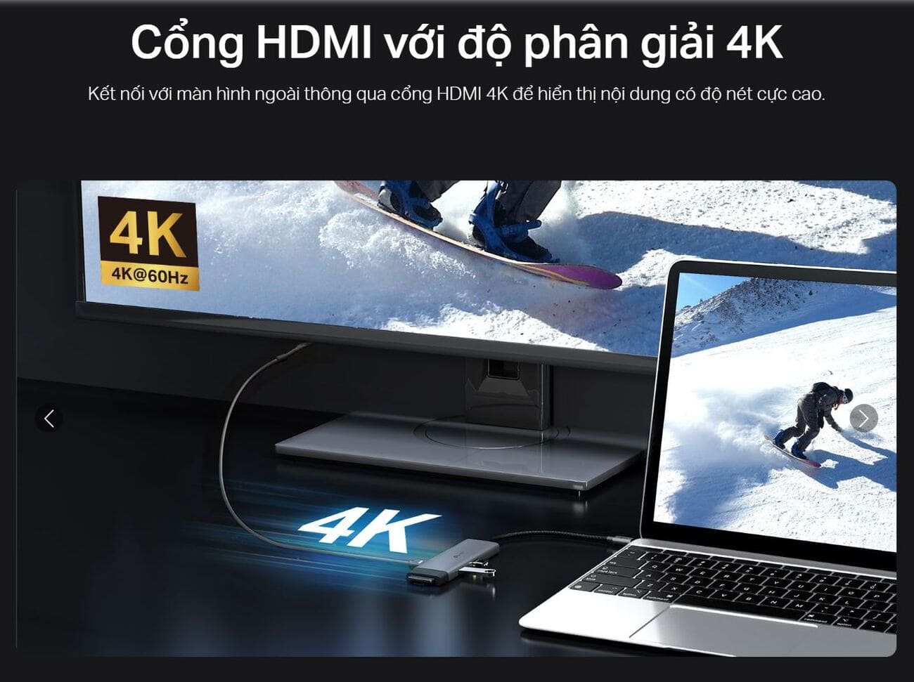 Hỗ trợ xuất hình qua cổng HDMI với độ phân giải lên đến 4K@60Hz để có trải nghiệm hình ảnh siêu sắc nét