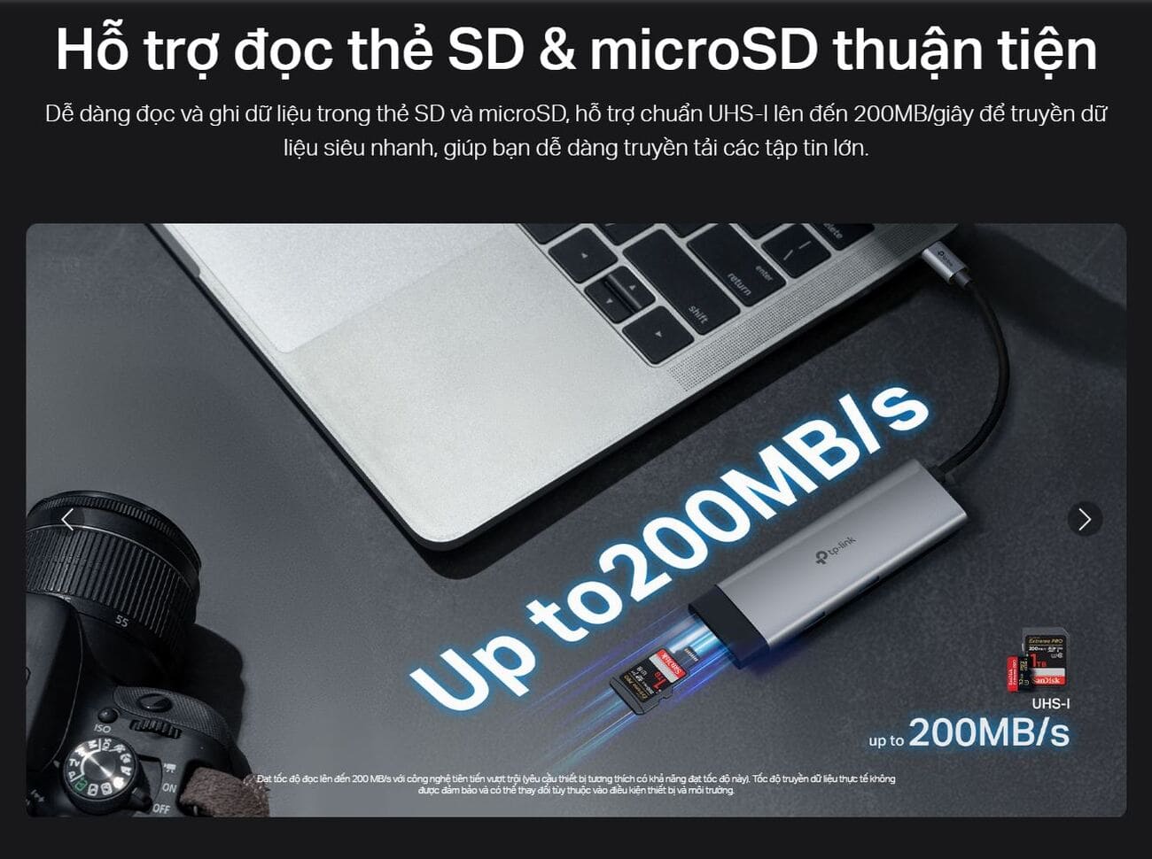 Dễ dàng đọc thẻ và truyền dữ liệu thẻ với 2 cổng SD và microSD (tối đa 200MB/s)