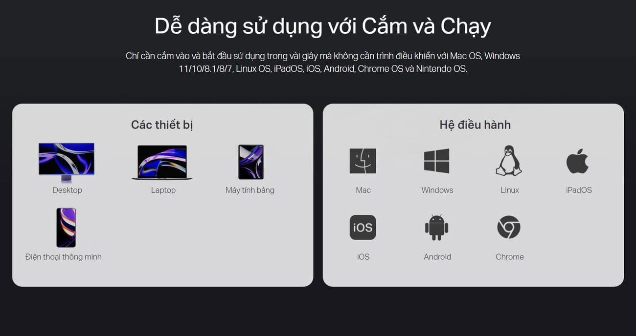 Dễ dàng sử dụng với Plug & Play - Chỉ cần cắm vào là sử dụng, không cần cài đặt driver