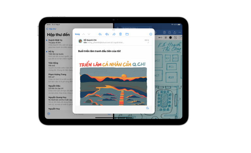 Hệ điều hành iPadOS được tối ưu hóa giúp người dùng dễ dàng làm việc đa nhiệm trên iPad Gen 11. Bạn có thể mở nhiều cửa sổ ứng dụng cùng lúc, kéo thả dữ liệu giữa các ứng dụng, chuyển đổi nhanh chóng giữa Safari, Pages, Keynote, Mail hay các ứng dụng học tập và giải trí khác.