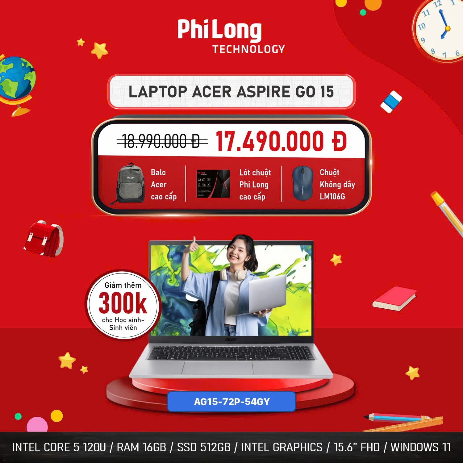Hỏi đáp về Laptop Acer Aspire Go 15 AG15-72P-54GY (Intel Core 5 120U, RAM 16GB, SSD 512GB, Intel Graphics, Màn Hình 15.6 inch FHD, Windows 11, Silver)