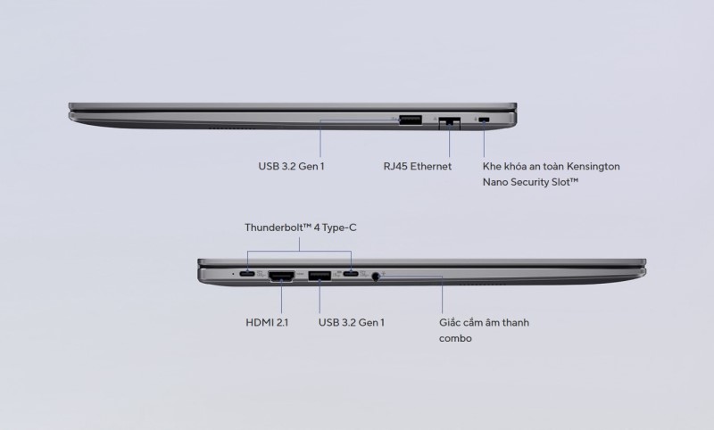 + Khe khóa Kensington Nano: Tăng cường bảo mật vật lý cho thiết bị tại văn phòng hoặc nơi công cộng.