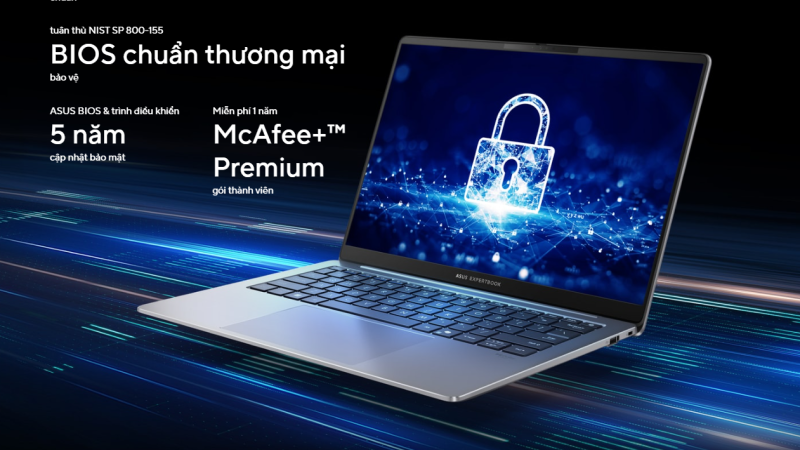 ASUS ExpertBook P5405CSA được trang bị hệ thống bảo mật đa lớp, đảm bảo an toàn tuyệt đối cho dữ liệu và thông tin quan trọng của bạn. Với nền tảng Windows 11 Secured-core PC và BIOS tuân thủ tiêu chuẩn NIST-155, chiếc laptop này cung cấp lớp bảo vệ vững chắc từ bên trong. Bên cạnh đó, tính năng đăng nhập sinh trắc học bằng cảm biến vân tay chuẩn FIDO2 và camera hồng ngoại, kết hợp với chip TPM 2.0, giúp bạn truy cập thiết bị một cách nhanh chóng và cực kỳ an toàn. Để bảo vệ dữ liệu một cách chủ động hơn, ASUS còn tặng kèm 1 năm tài khoản McAfee Premium giúp bạn vi vu lướt web mà không lo về mã độc. Cuối cùng là phần mềm độc quyền ASUS Dual SSD backup, tự động sao lưu dữ liệu theo yêu