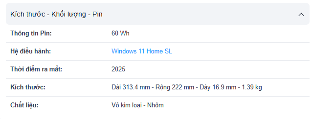 Hệ Điều Hành: Windows 11 Home, Camera IR, có công tắc khóa Camera, nhận diện khuôn mặt, Trọng lượng 1.4kg
