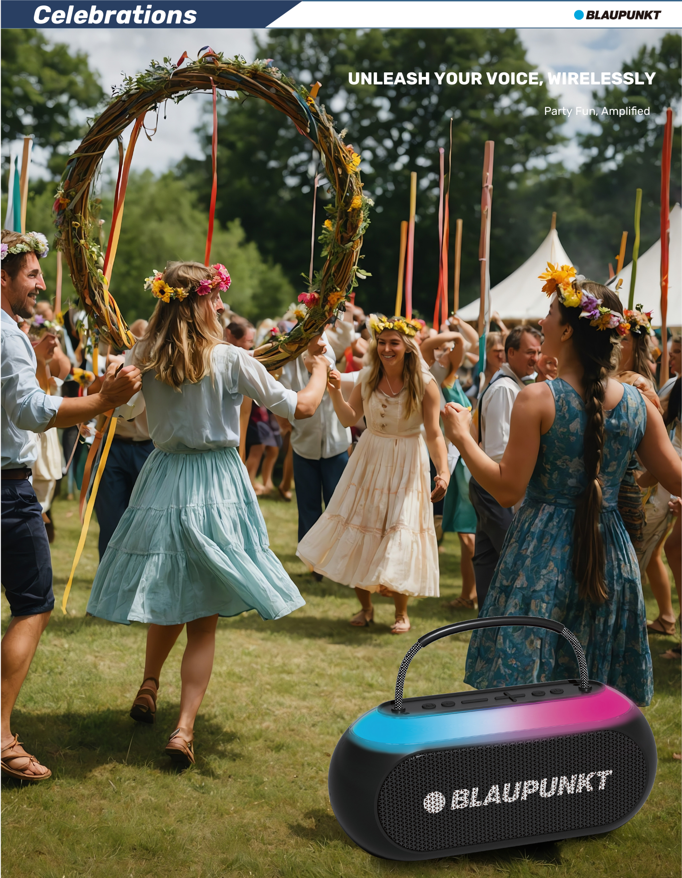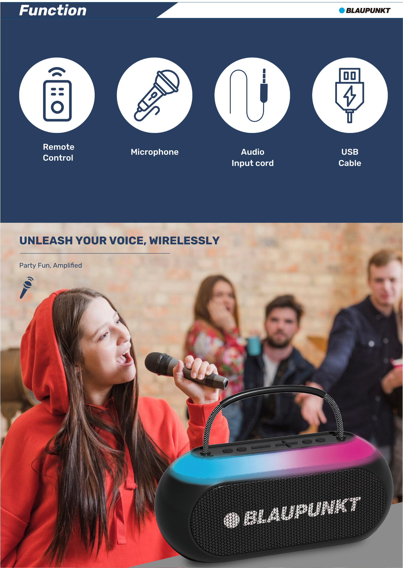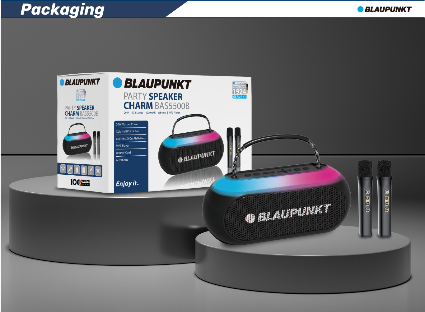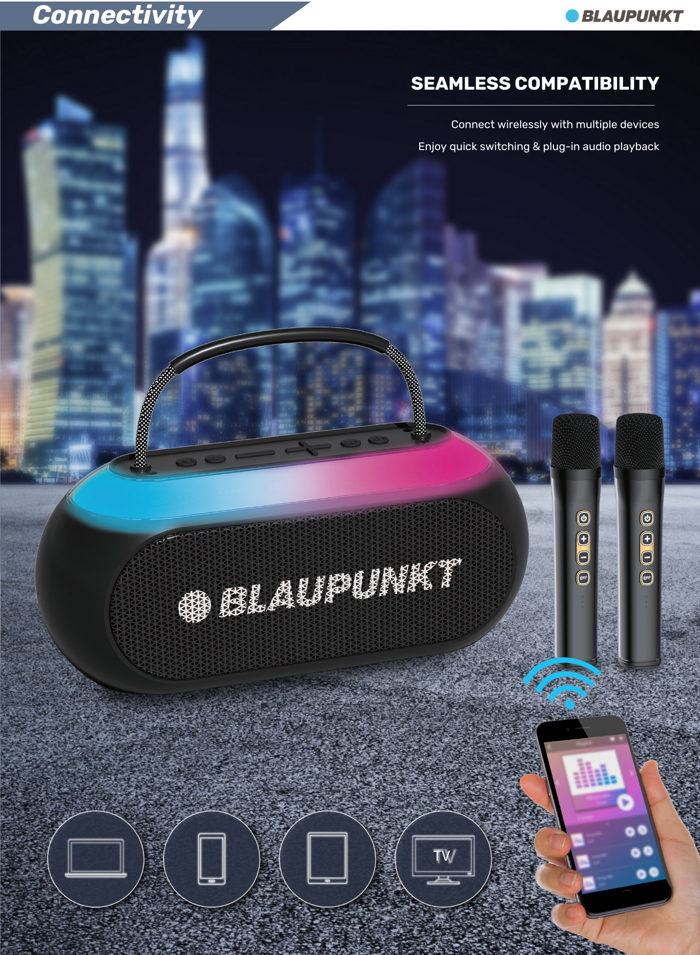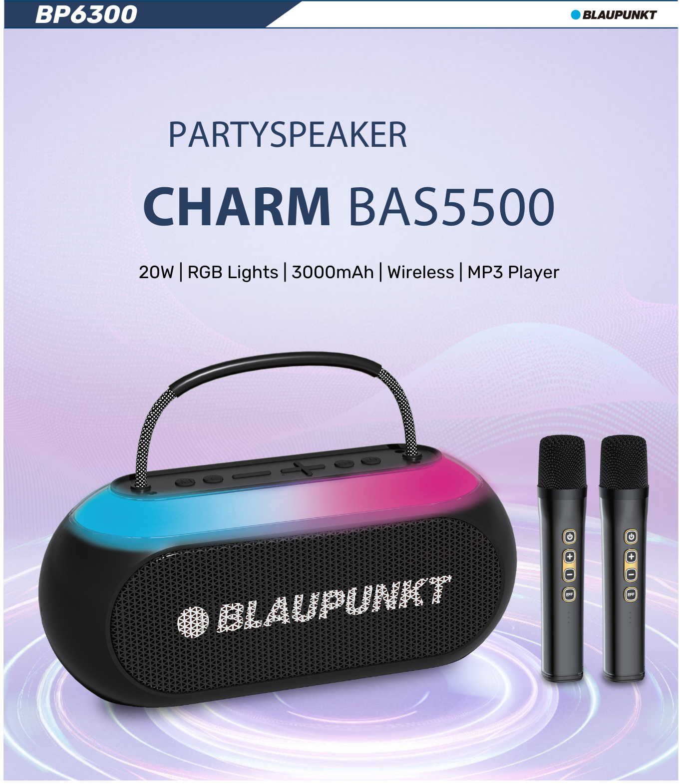 Loa Bluetooth Blaupunkt BAS5500 (20W, Bluetooth 5.4, AUX, TF, Pin10h, Kèm 2 mic)