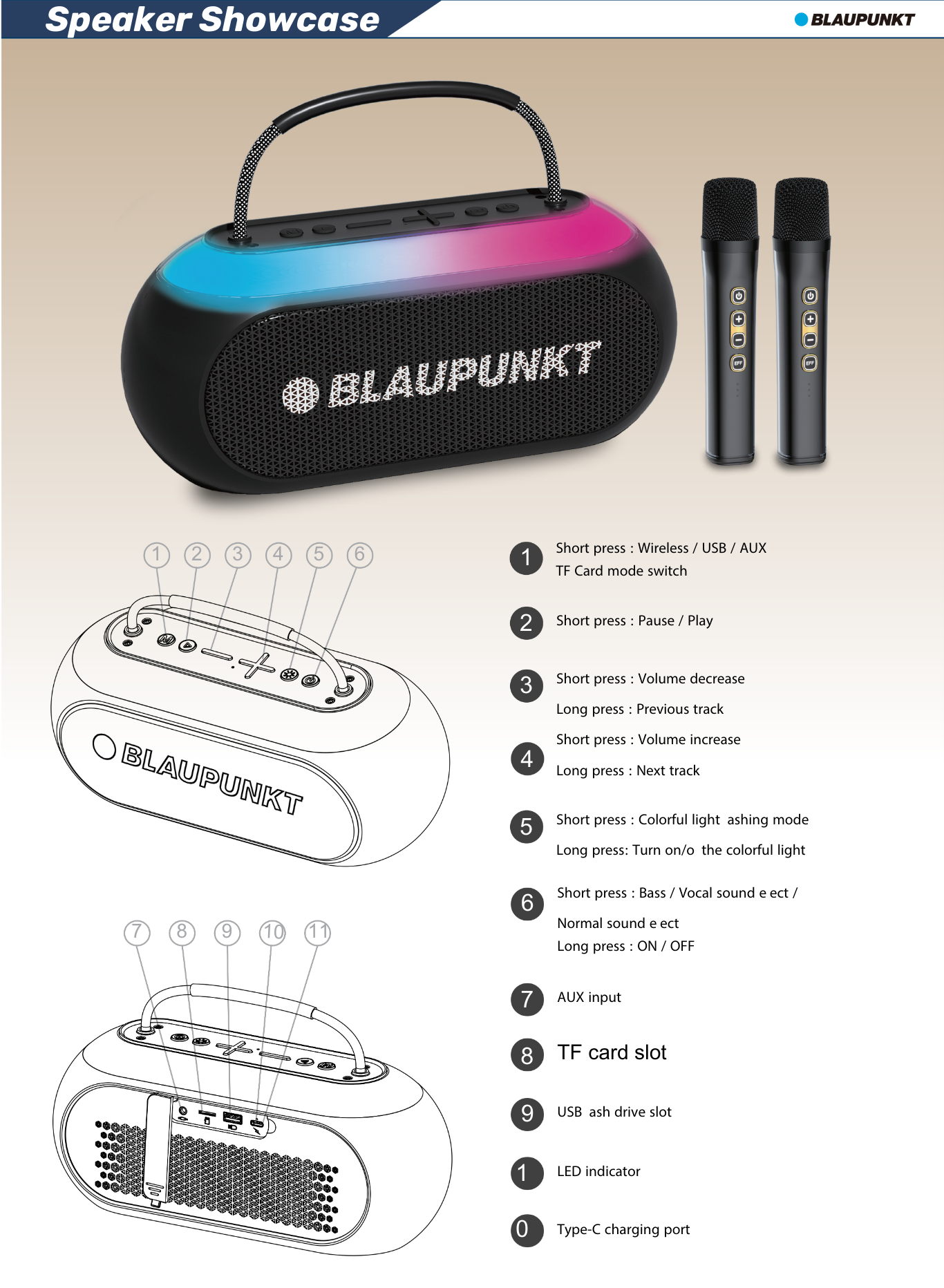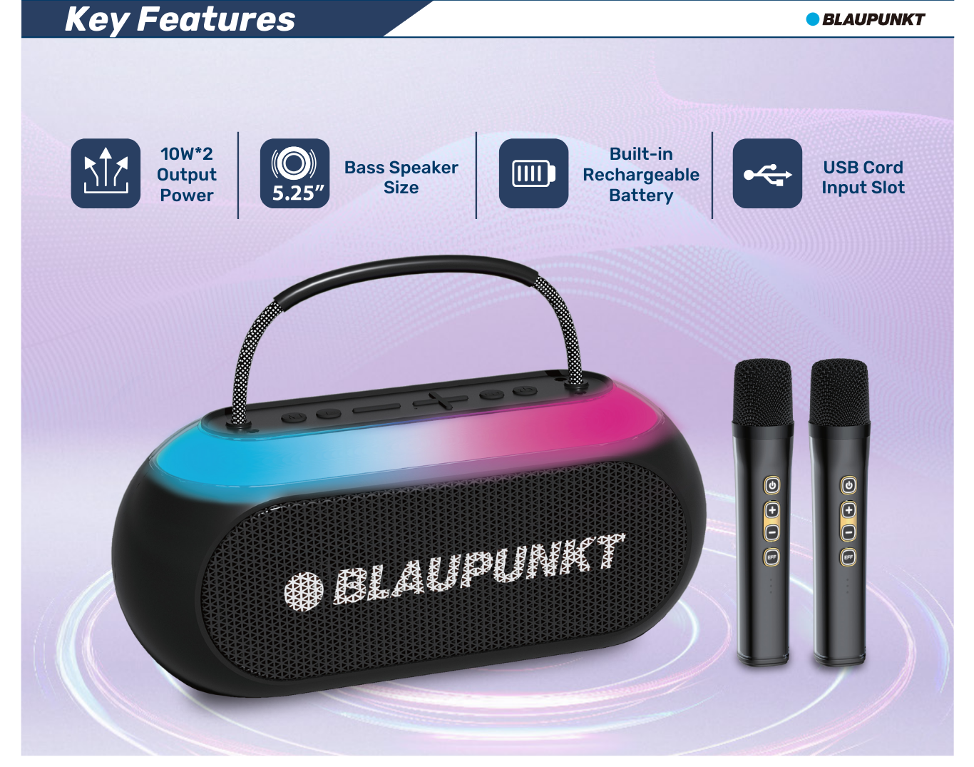 Hỏi đáp về Loa Bluetooth Blaupunkt BAS5500 (20W, Bluetooth 5.4, AUX, TF, Pin10h, Kèm 2 mic)