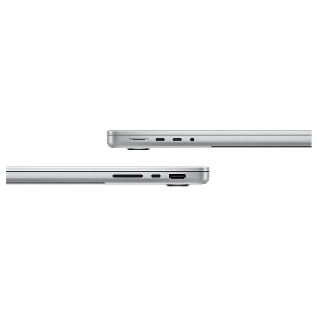 Cổng kết nối: 3 x Cổng Thunderbolt 4 (USB-C) hỗ trợ: Sạc, DisplayPort, Thunderbolt 4 (lên đến 40Gb/s), USB 4 (lên đến 40Gb/s), 1 x Cổng sạc MagSafe 3, 1 x Jack cắm tai nghe 3.5mm có hỗ trợ nâng cao cho tai nghe trở kháng cao, 1 x Cổng HDMI hỗ trợ đầu ra âm thanh đa kênh, 1 x Khe thẻ nhớ SDXC