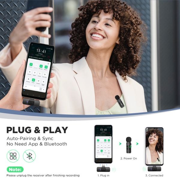 Bộ micro không dây này bao gồm một bộ phát kẹp siêu nhỏ gọn với micro đa hướng tích hợp và một bộ thu cắm hai kênh có đầu nối USB-C, cắm trực tiếp vào thiết bị của bạn. Gắn bộ phát vào ve áo của người tài năng và ghi lại âm thanh để chia sẻ trên mạng xã hội. Tất cả các thành phần có thể giao tiếp từ khoảng cách lên đến 50m thông qua tần số 2,4 GHz.