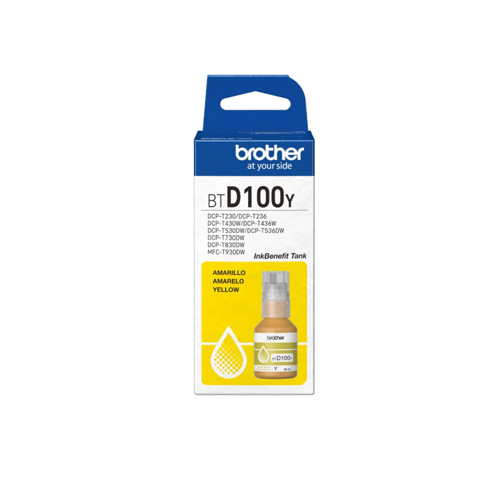 Mực In Phun Màu Brother 48.8ml BTD100Y Yellow (DCP-T230, T430W, T530DW, T730DW, T830DW, MFC-T930DW)