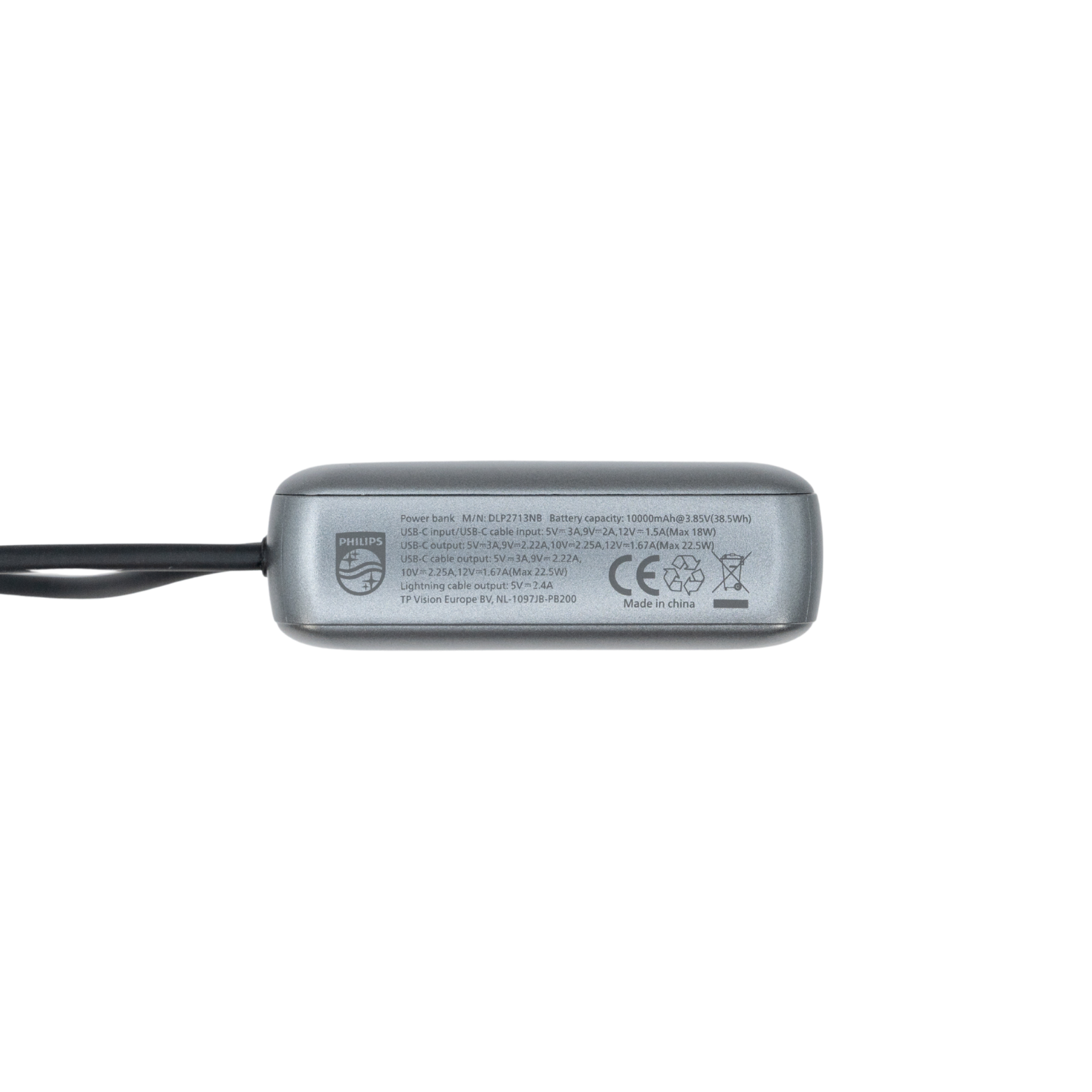 Pin Sạc Dự Phòng Nhỏ Gọn 10.000mAh Philips DLP2713NW Black Grey (Kèm cáp Type-C và Lightning)
