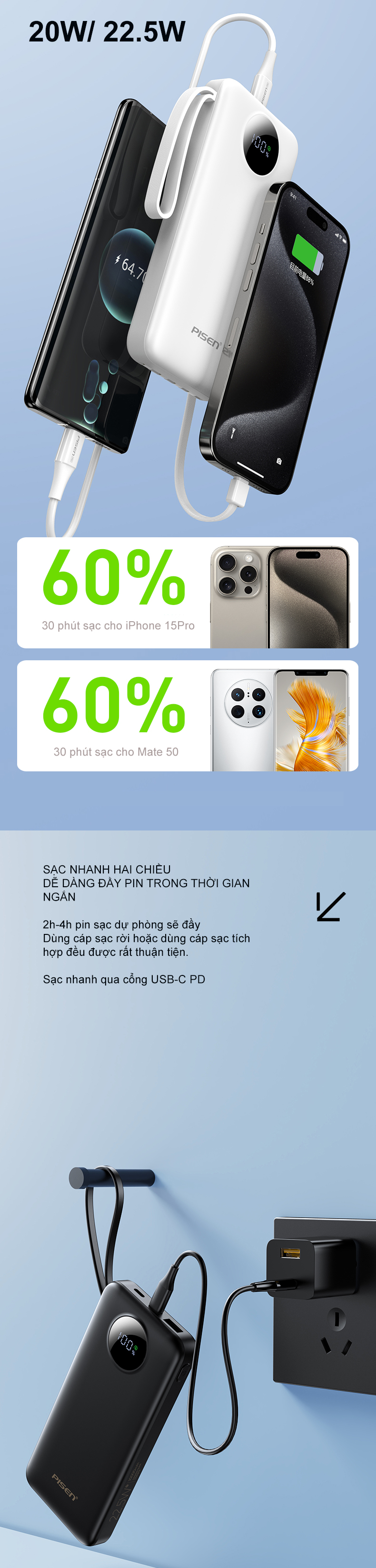 Hỏi đáp về Pin Sạc Dự Phòng PISEN 10000mAh QUICK POWERLink Round 22.5W TP-D099 Black