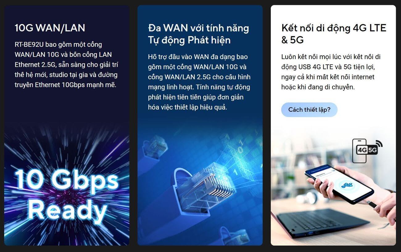 Hỏi đáp về Router WiFi 7 ASUS RT-BE92U (BE9700Mbps, WAN/LAN 10G, 4x LAN 2.5G, 3 Băng Tần, AiProtection, AiMesh)