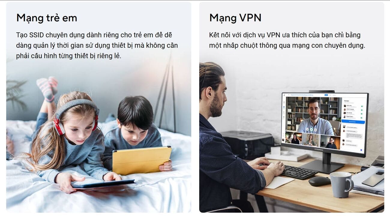 "You can create additional networks for different purposes, these networks are separate from the main network domain, to provide enhanced security, and create comprehensive network environment with customized settings." • Tối ưu Quy tắc mạng Guest :2.4 GHz + 5 GHz : 3 Guest Network Pro Encryption : Open system, WPA/WPA2/WPA3-Personal |