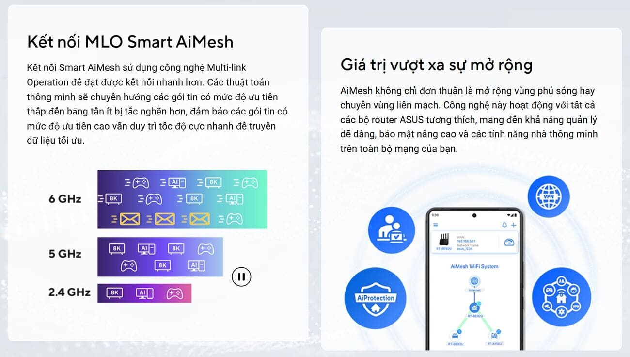 Tính năng AiMesh kết hợp với các thiết bị tương thích, mở rộng vùng phủ mạng lên đến hơn 250m vuông